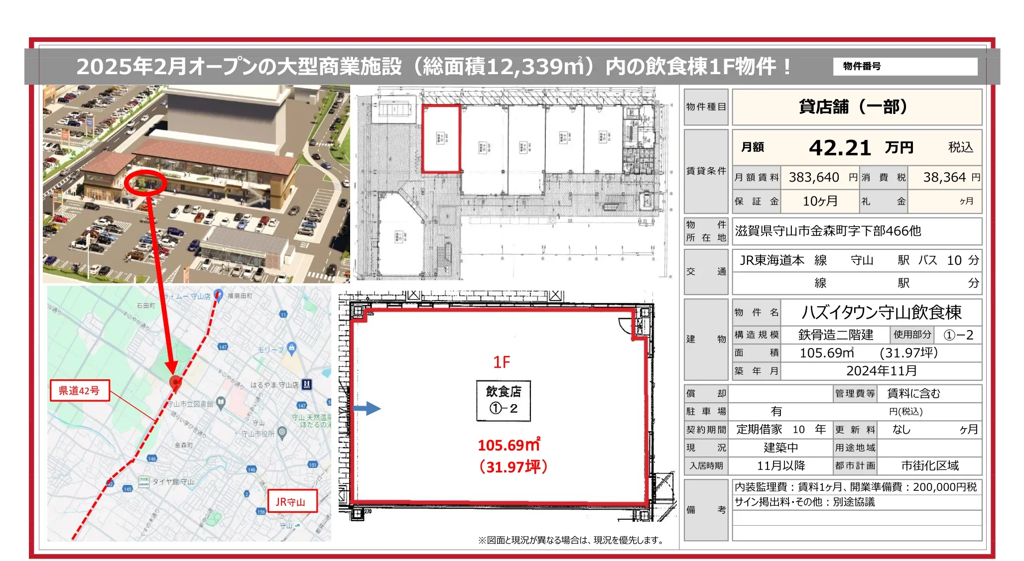 | 物件名 | ハズイタウン守山飲食棟 |