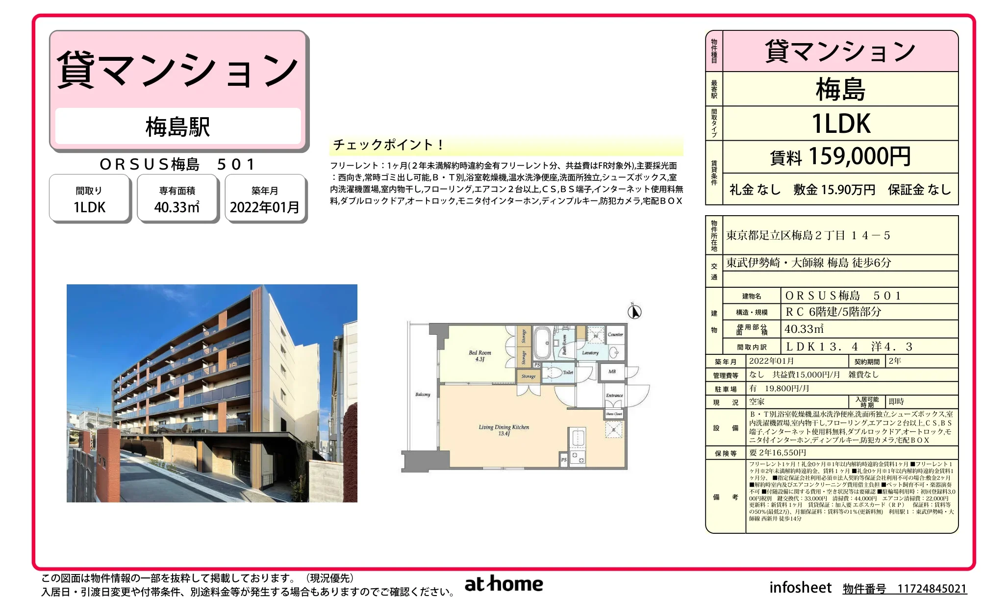 | アクセス | 梅島 (徒歩6分) |