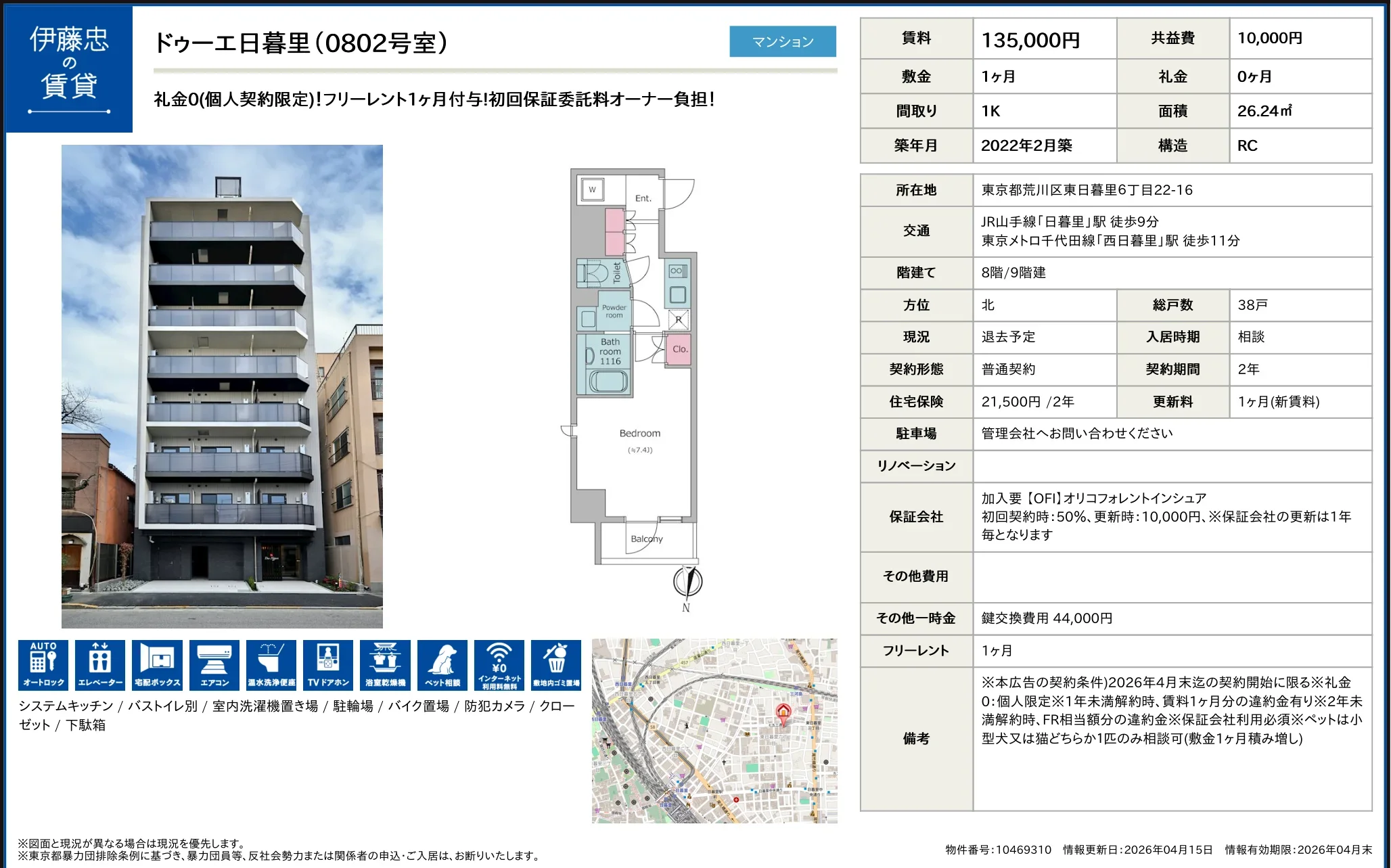 | 部屋番号 | 0802号 |