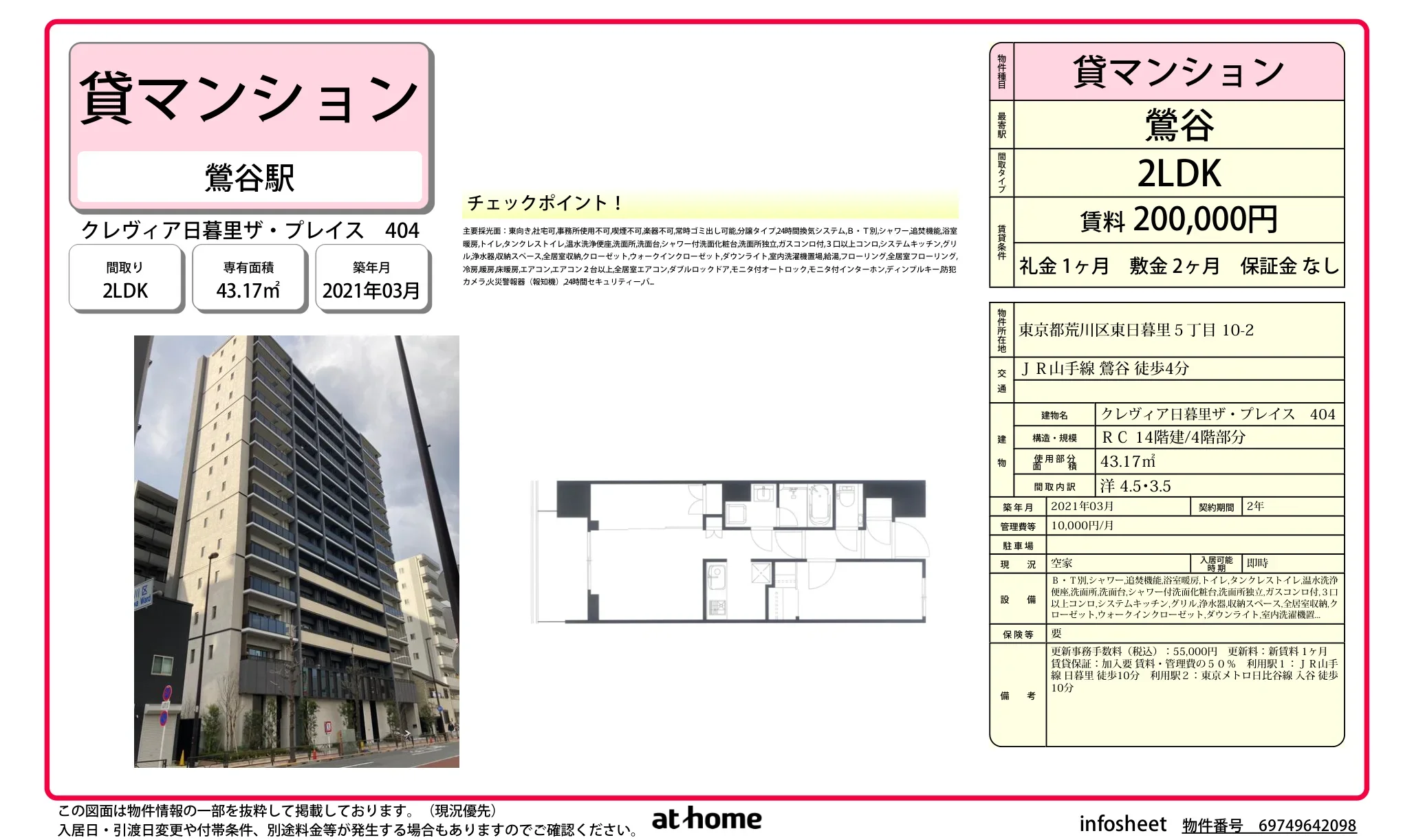 | 建物名 | クレヴィア日暮里ザ・プレイス |