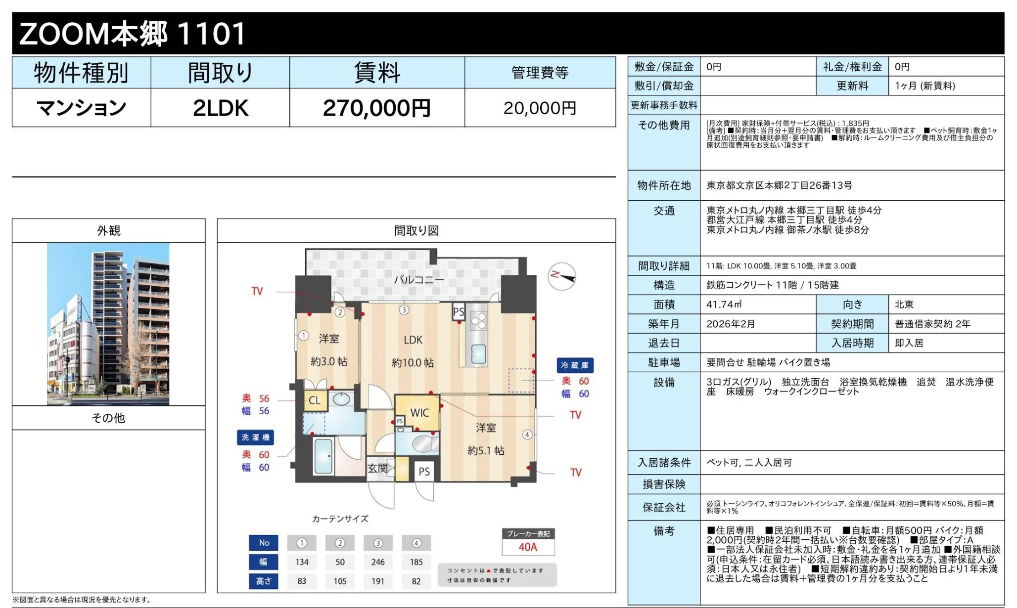 | 物件名 | ZOOM本郷 1101 1101号 |