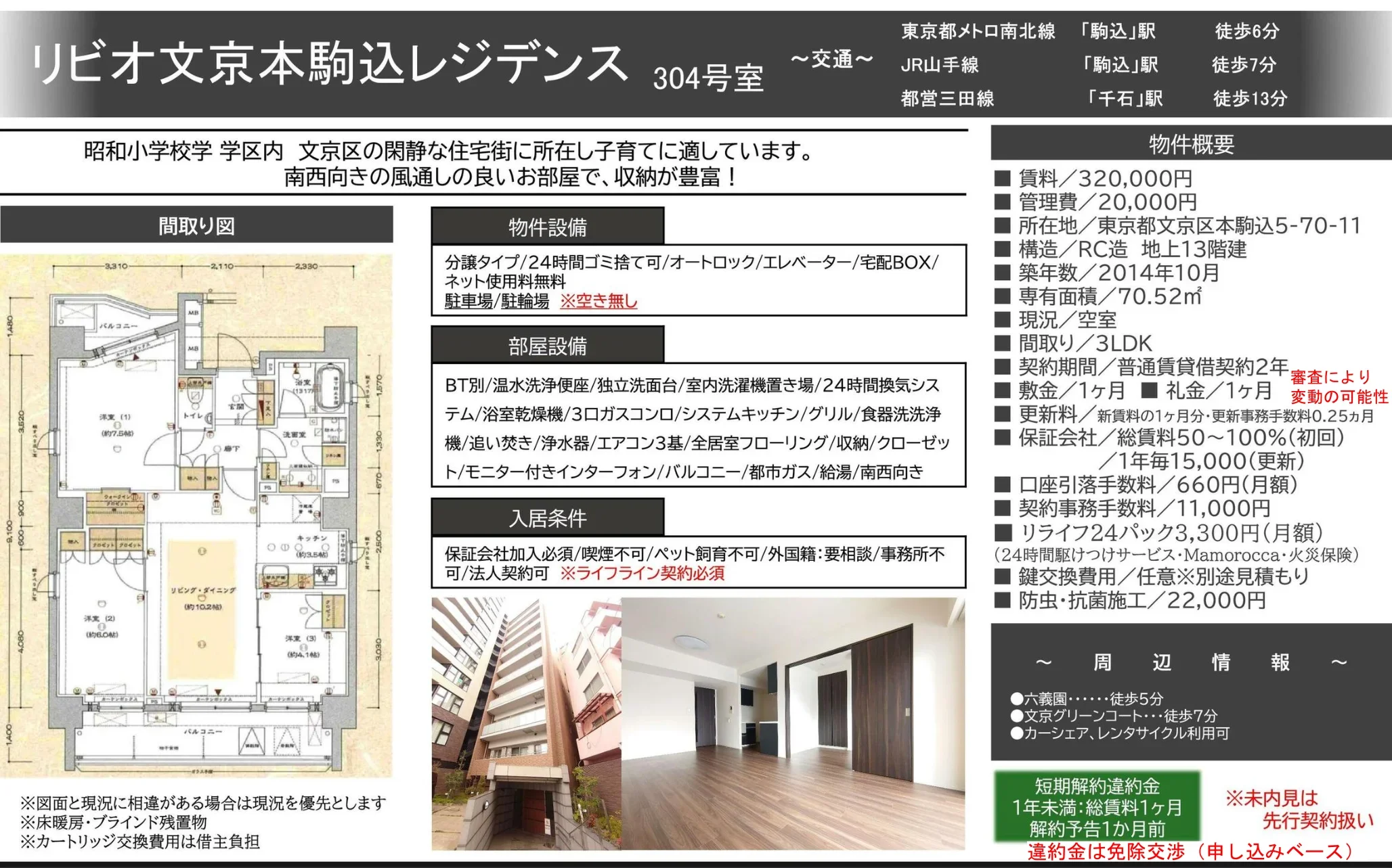 | 物件名 | リビオ文京本駒込レジデンス 304号 |