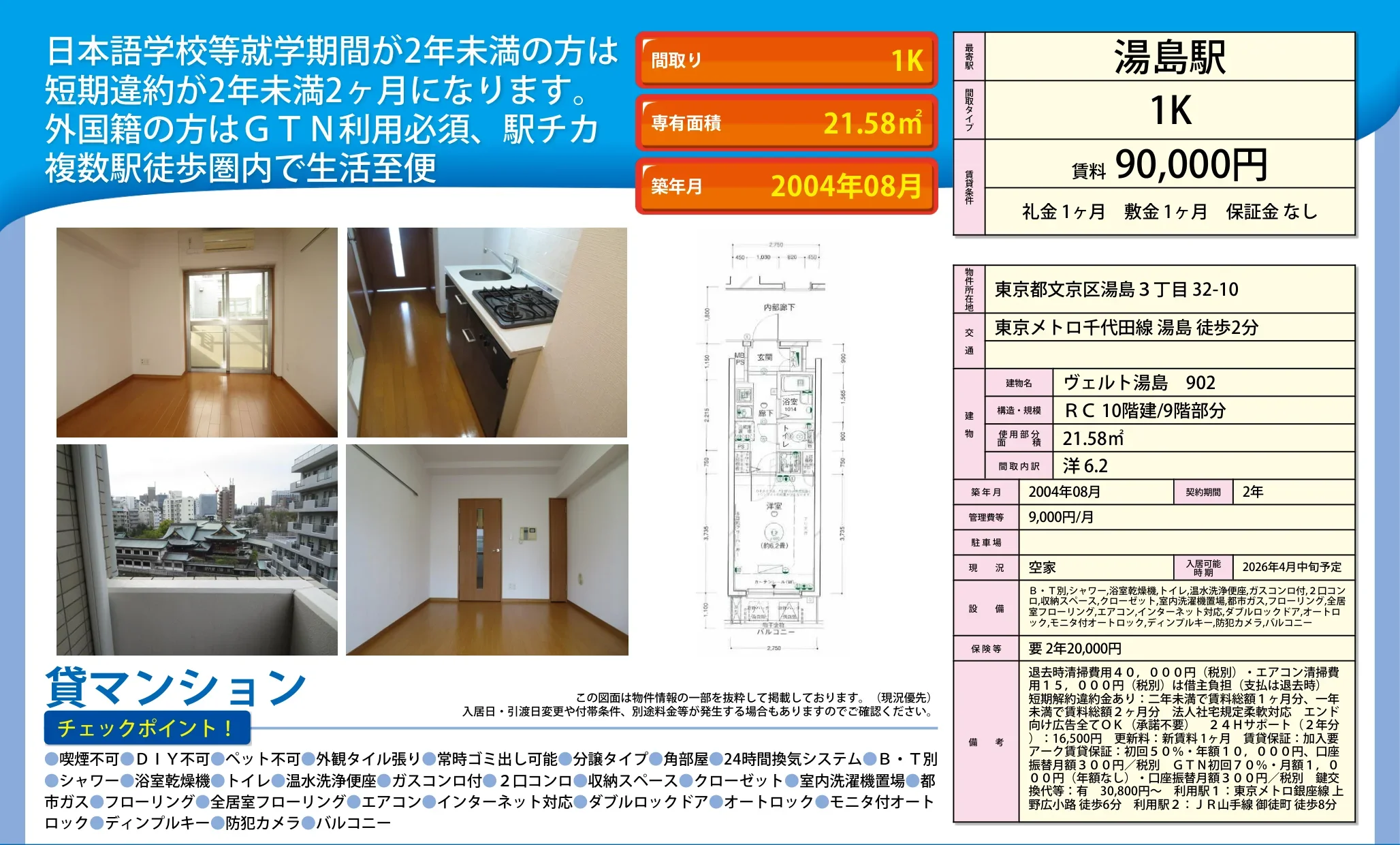 | 建物名 | ヴェルト湯島 902 |