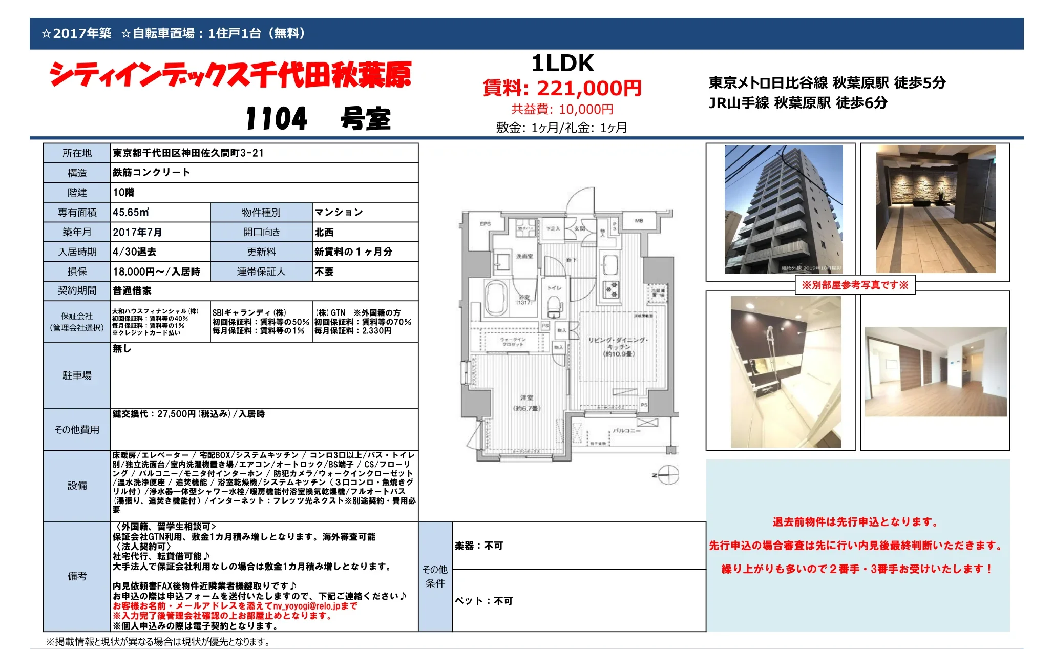 | 部屋番号 | 1104号 |