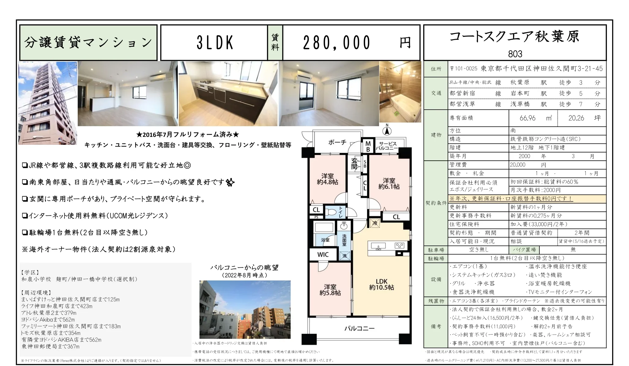 | 物件名 | コートスクエア秋葉原 803 |