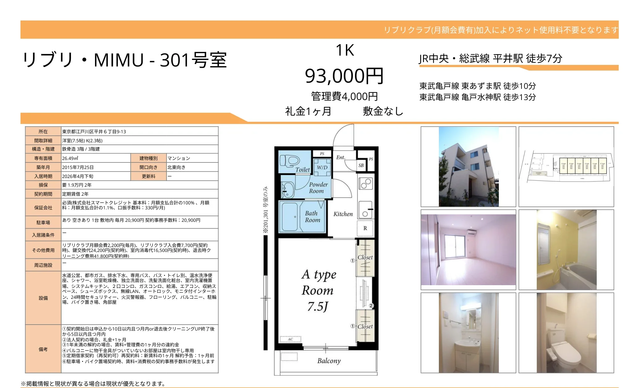 | アクセス | 平井駅 (徒歩7分) 東あずま駅 (徒歩10分) 亀戸水神駅 (徒歩13分) |