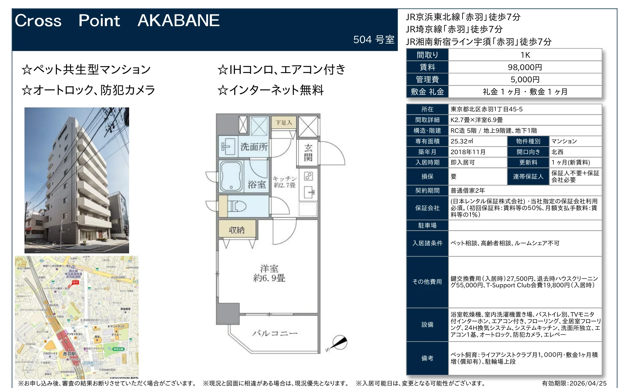 | 物件名 | クロスポイント 504号室 |