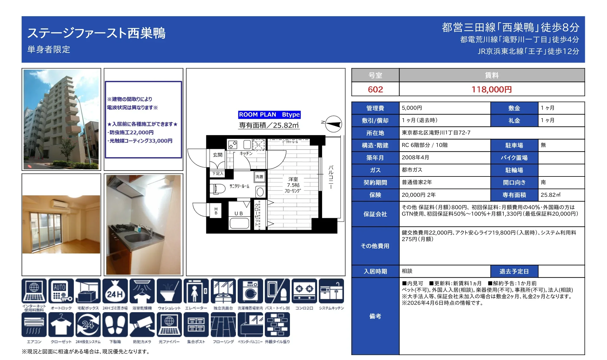 | 物件名 | ステージファースト西巣鴨 602号 |