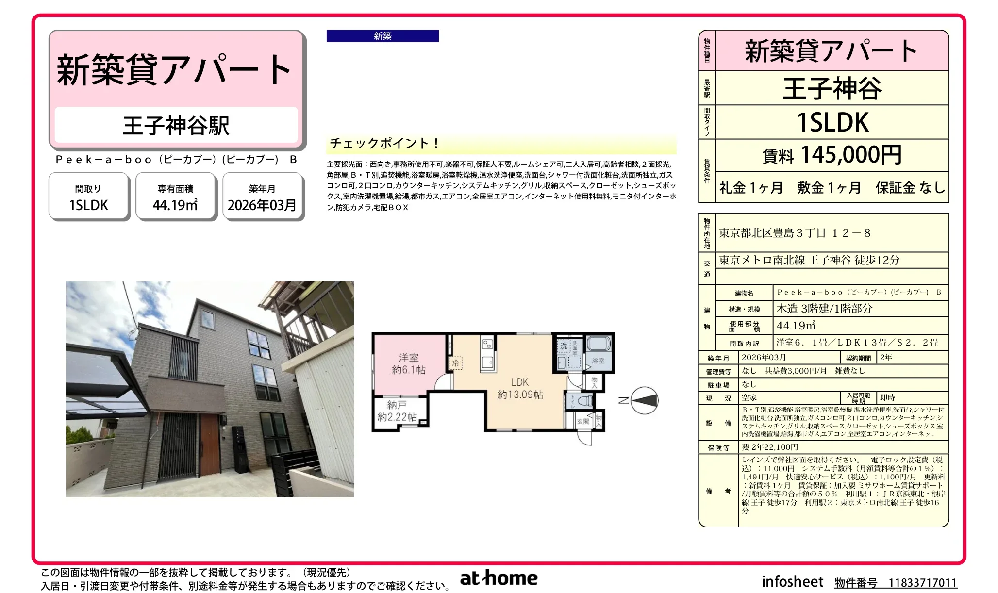 | アクセス | 王子神谷 (徒歩12分) |