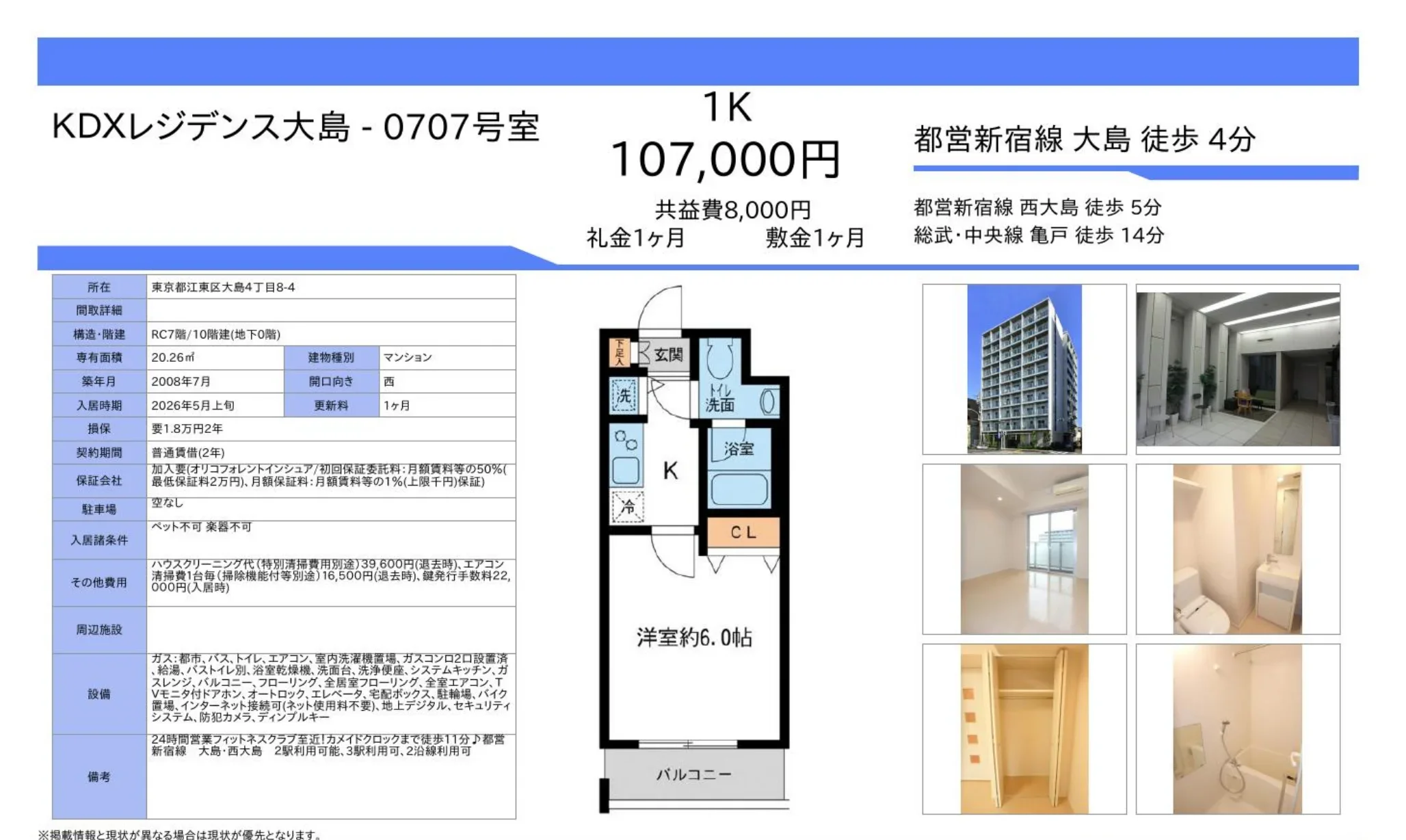 | 物件名 | KDXレジデンス大島 0707号室 0707号 |