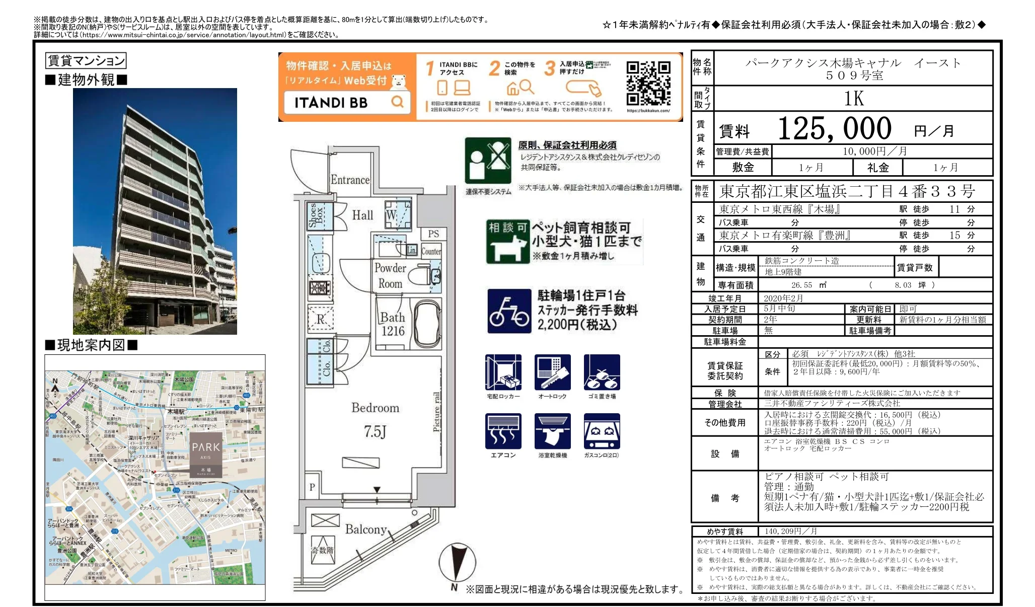 | 物件名 | パークアクシス木場キャナル イースト 509号室 |