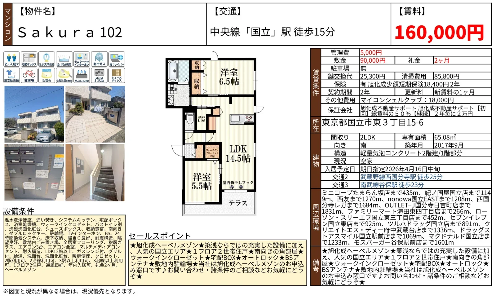 | 引渡時期 | 期日指定 2026-04-16中旬 |