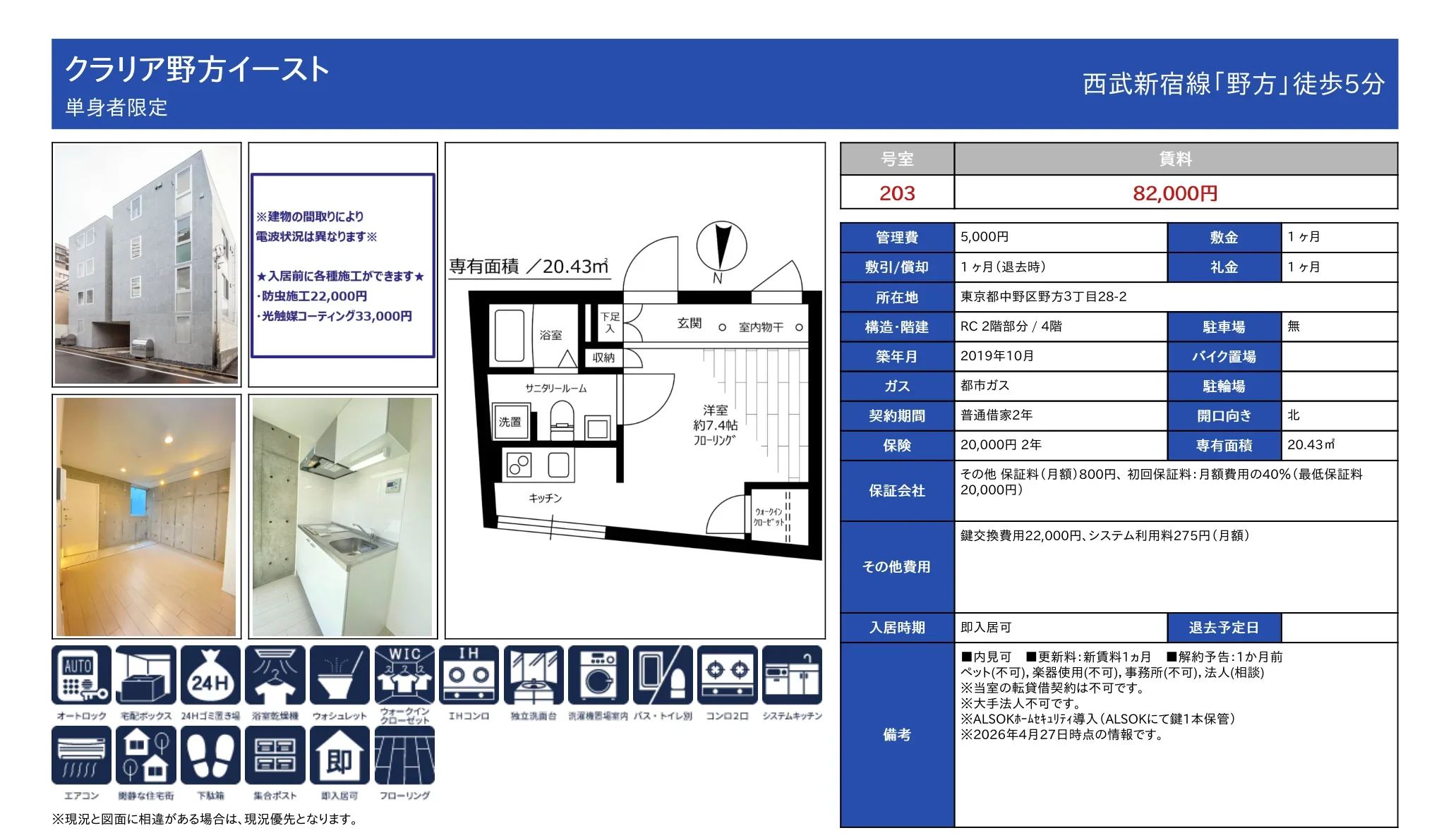 | 物件名 | クラリア野方イースト 203号 |