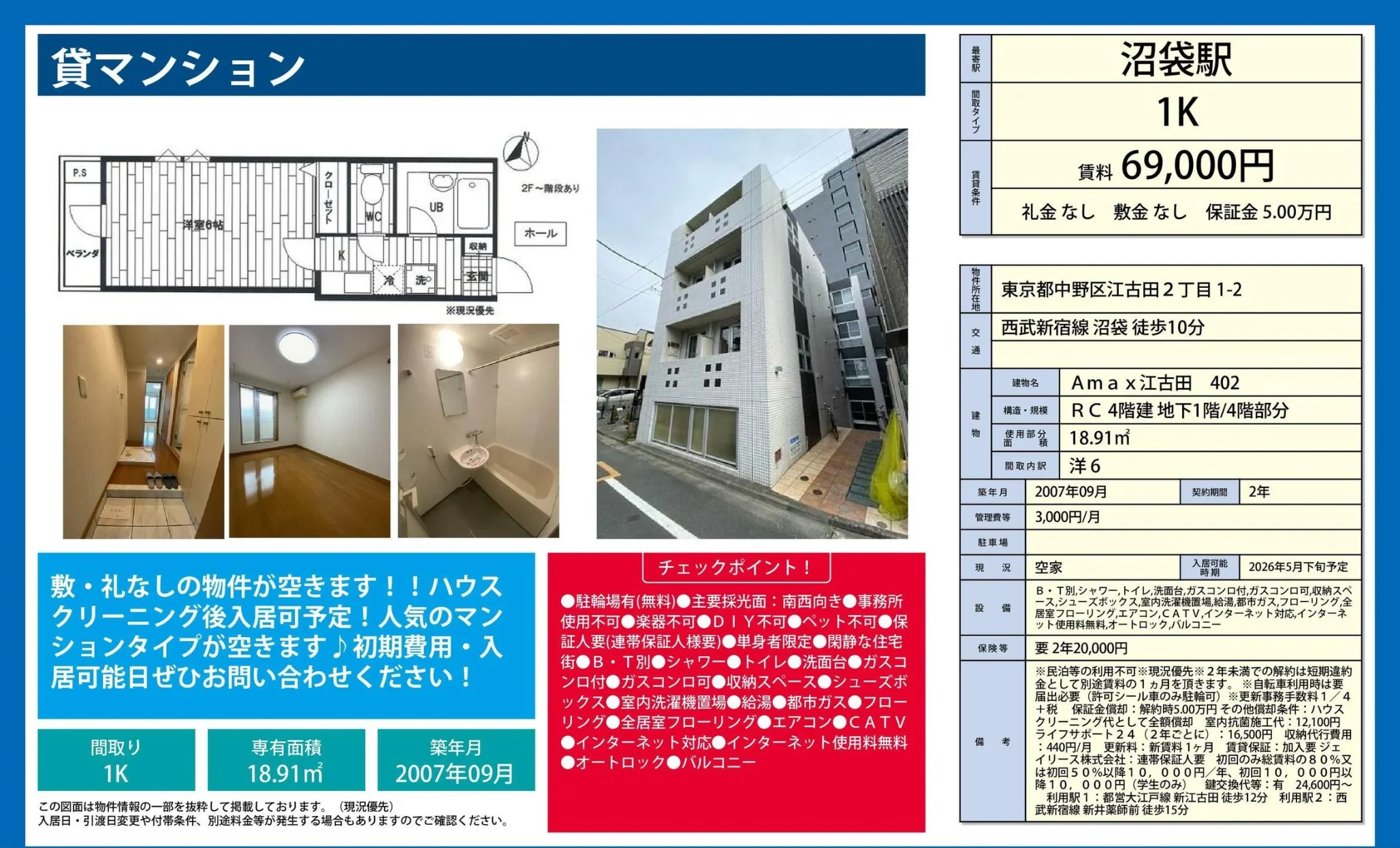 | 物件名 | Amax 江古田 402 402号 |