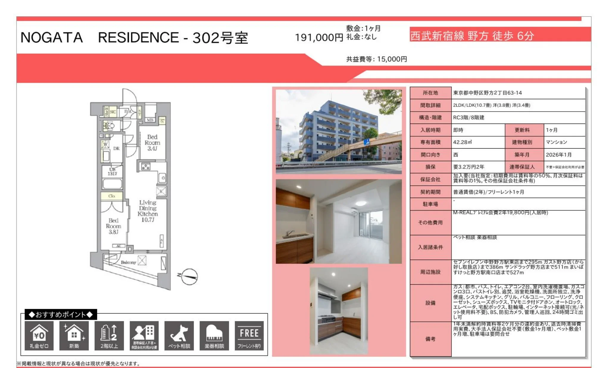 | アクセス | 野方 (徒歩6分) |