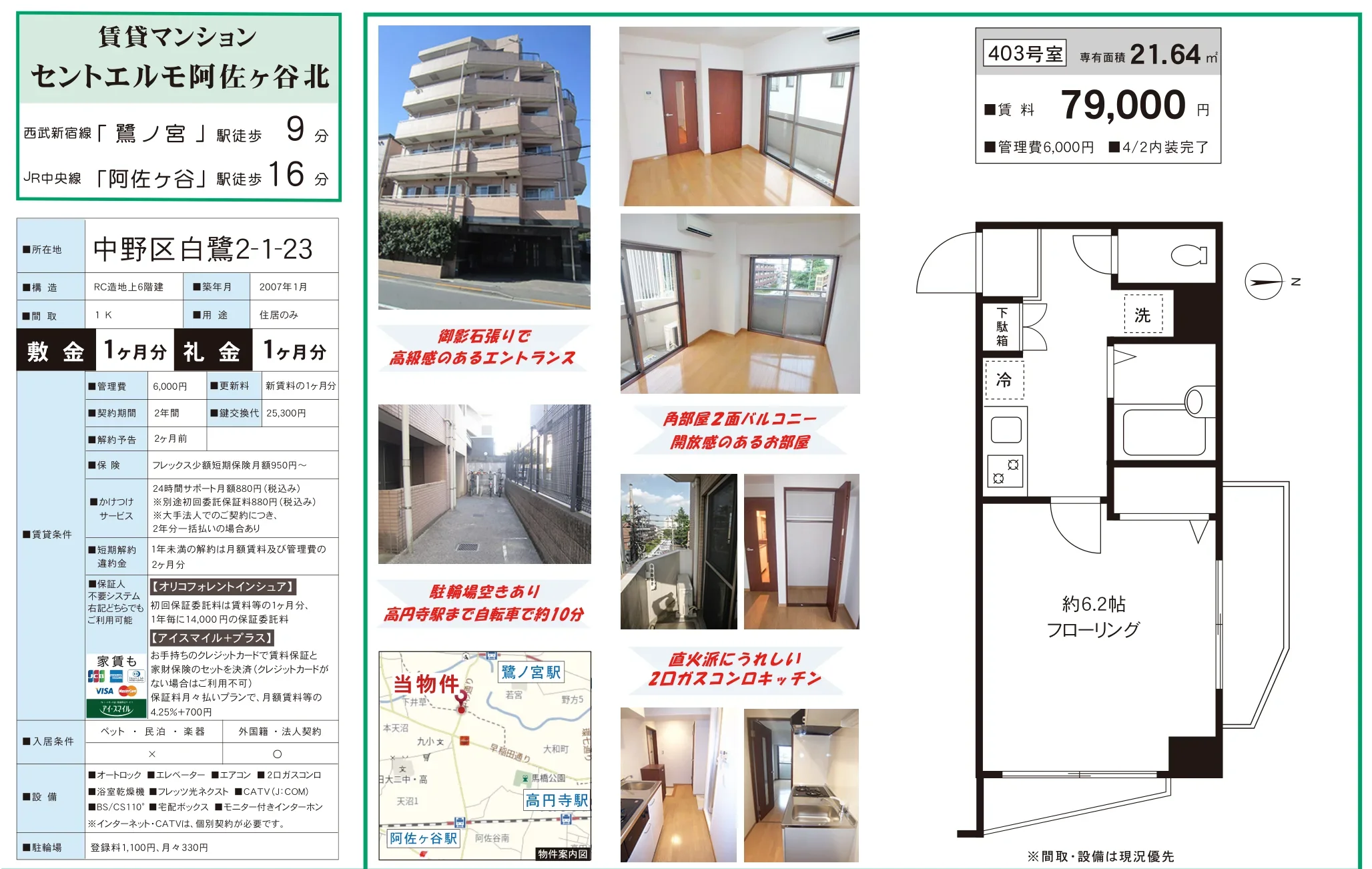 | 物件名 | セントエルモ阿佐ヶ谷北 403号 |