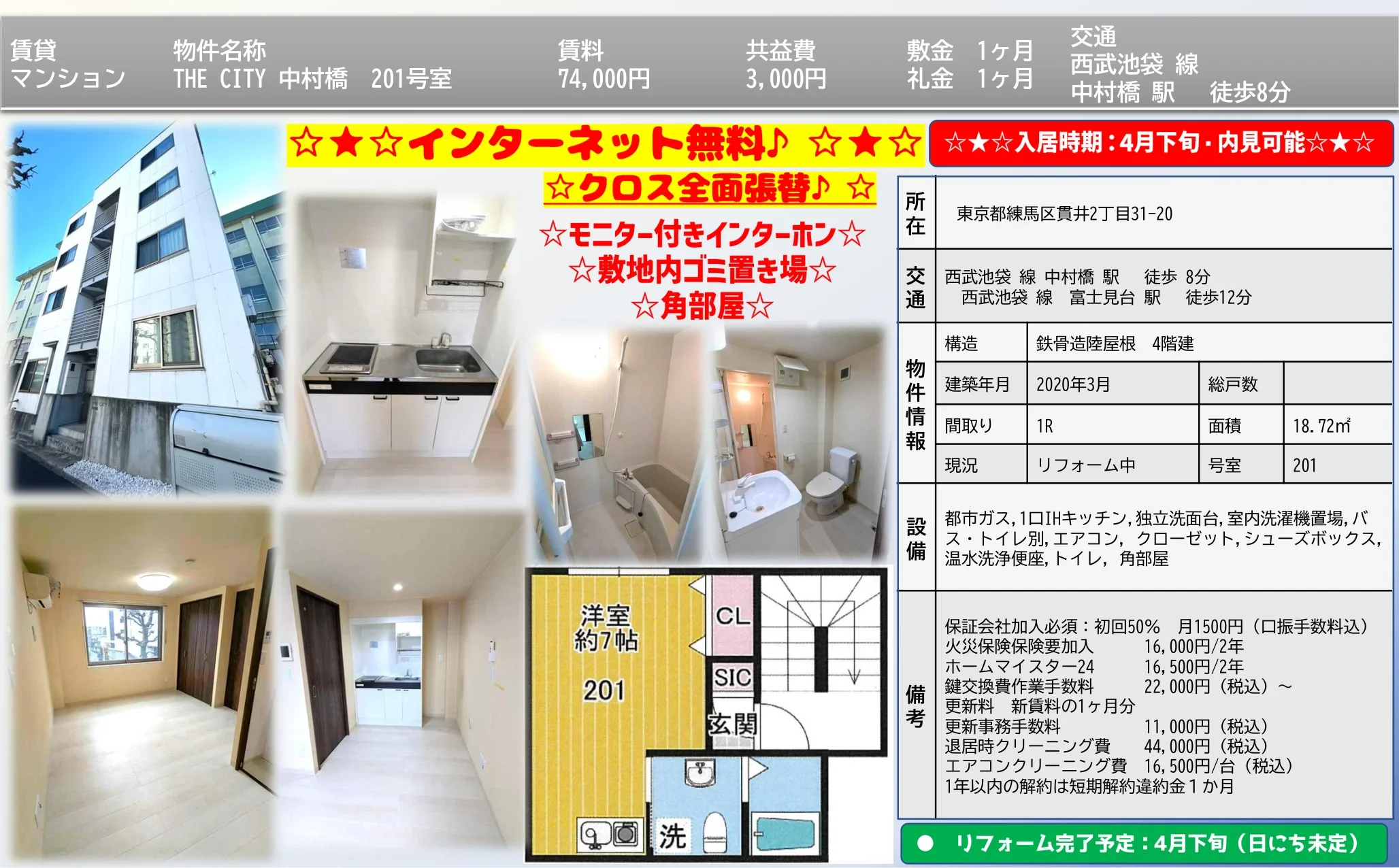 | 物件名 | THE CITY 中村橋 201号室 201号 |