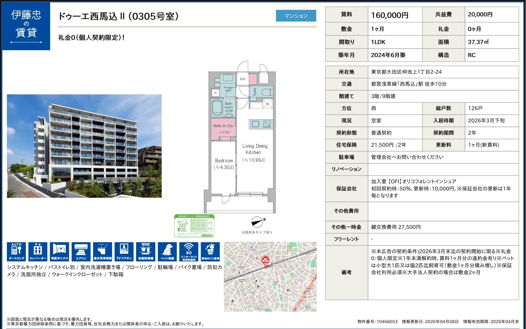 | 部屋番号 | 0305 |