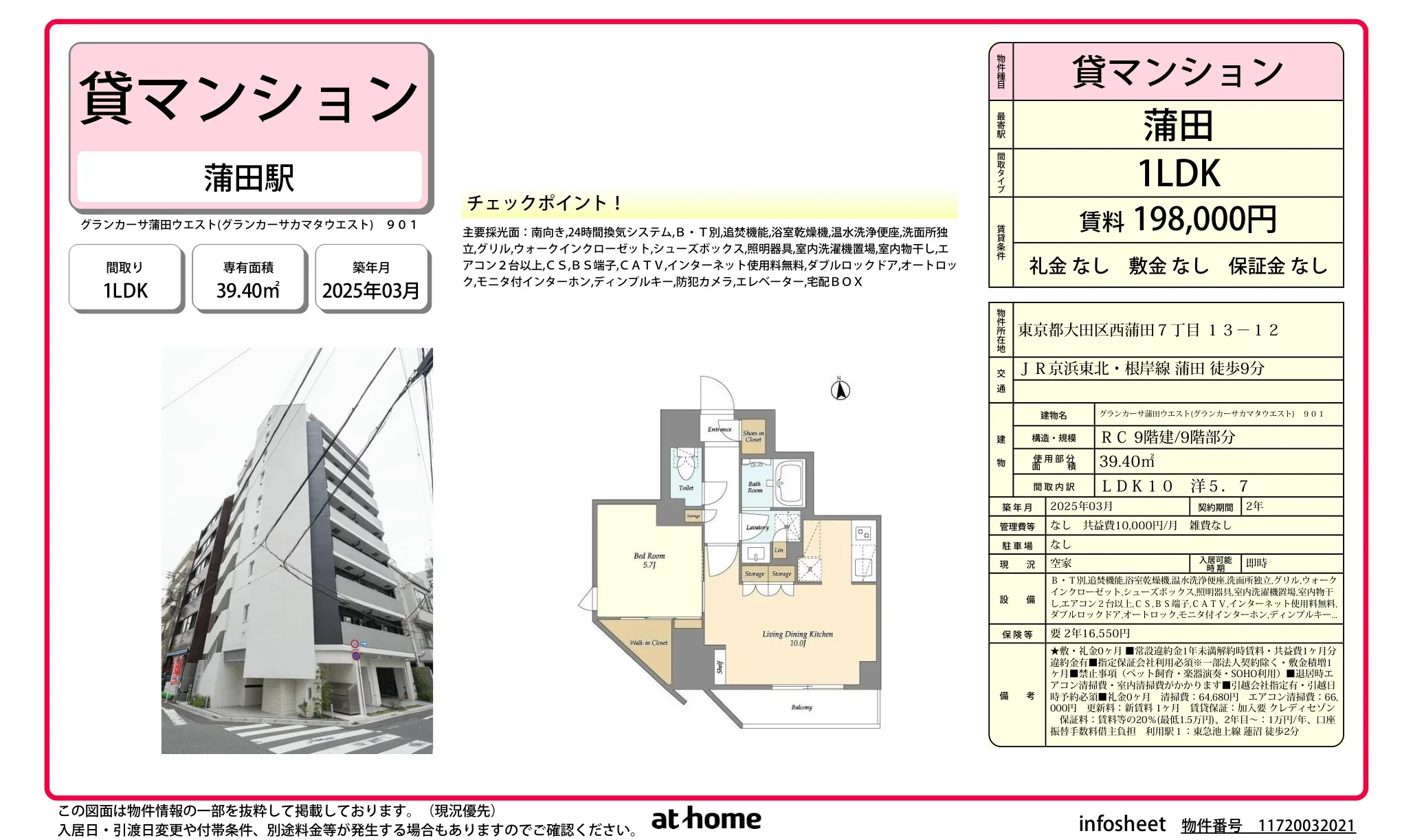 | 物件名 | グランカーサ蒲田ウエスト(グランカーサカマタウエスト) 901 901号 |