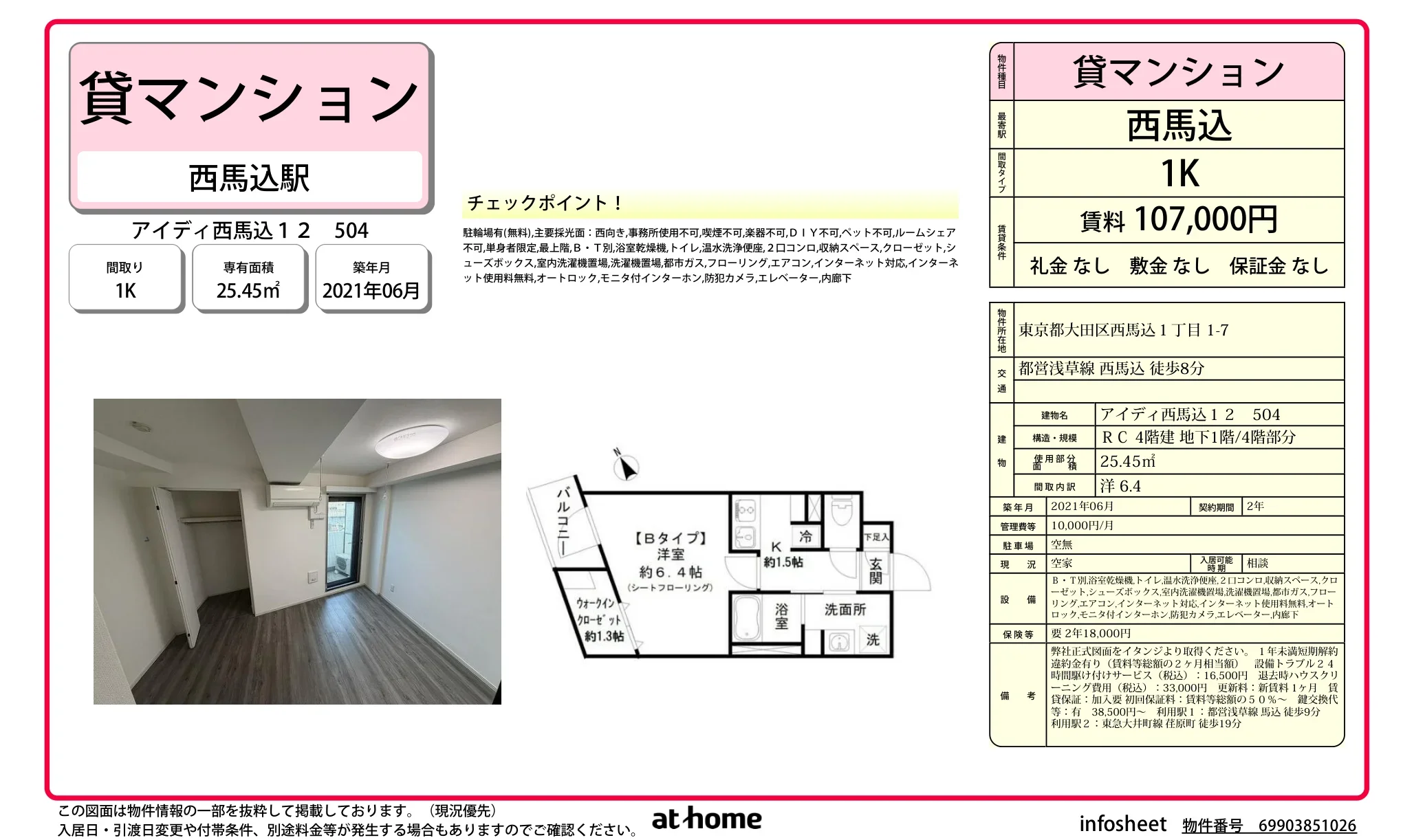 | アクセス | 西馬込 (徒歩8分) 馬込 (徒歩9分) 荏原町 (徒歩19分) |
