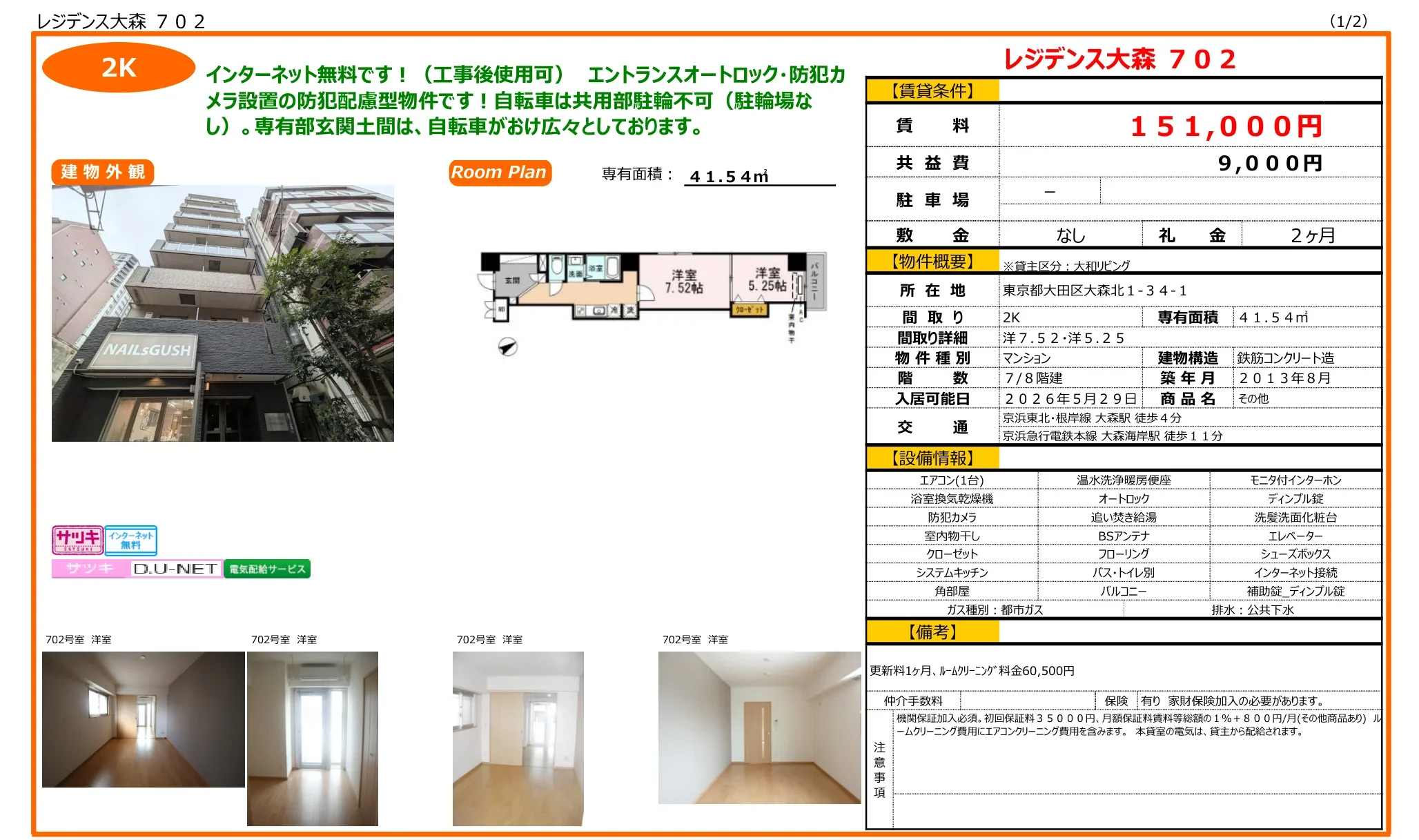 | アクセス | 大森駅 (徒歩4分) 大森海岸駅 (徒歩11分) |