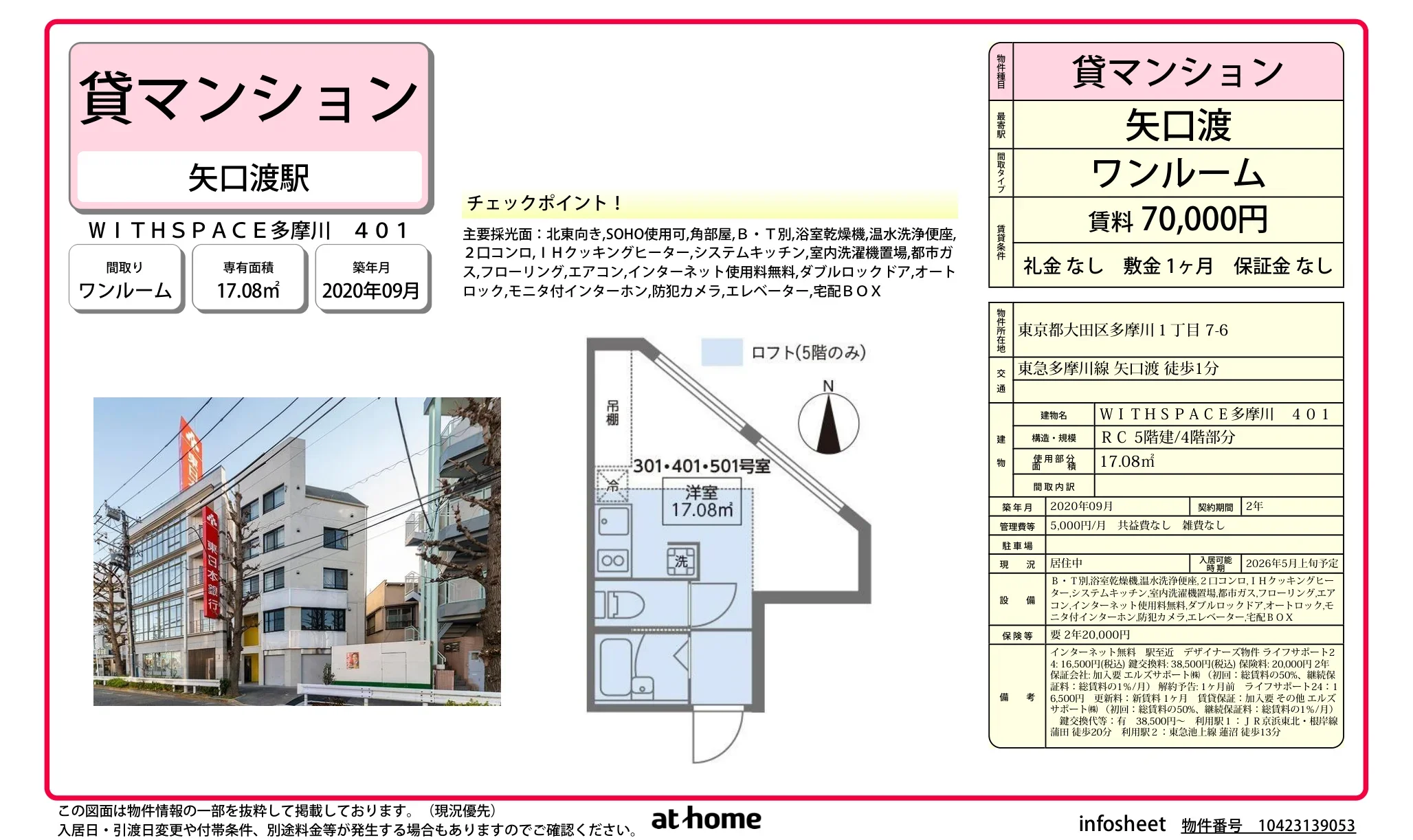 | 物件名 | WITHSPACE 多摩川 401 401 |