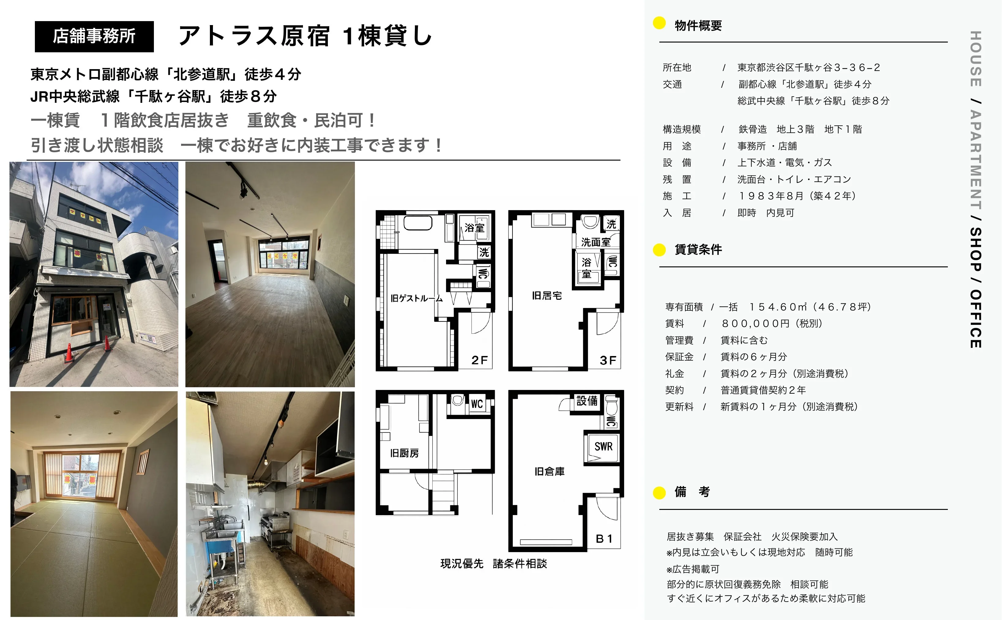 | アクセス | 北参道駅 (徒歩4分) 千駄ヶ谷駅 (徒歩8分) |
