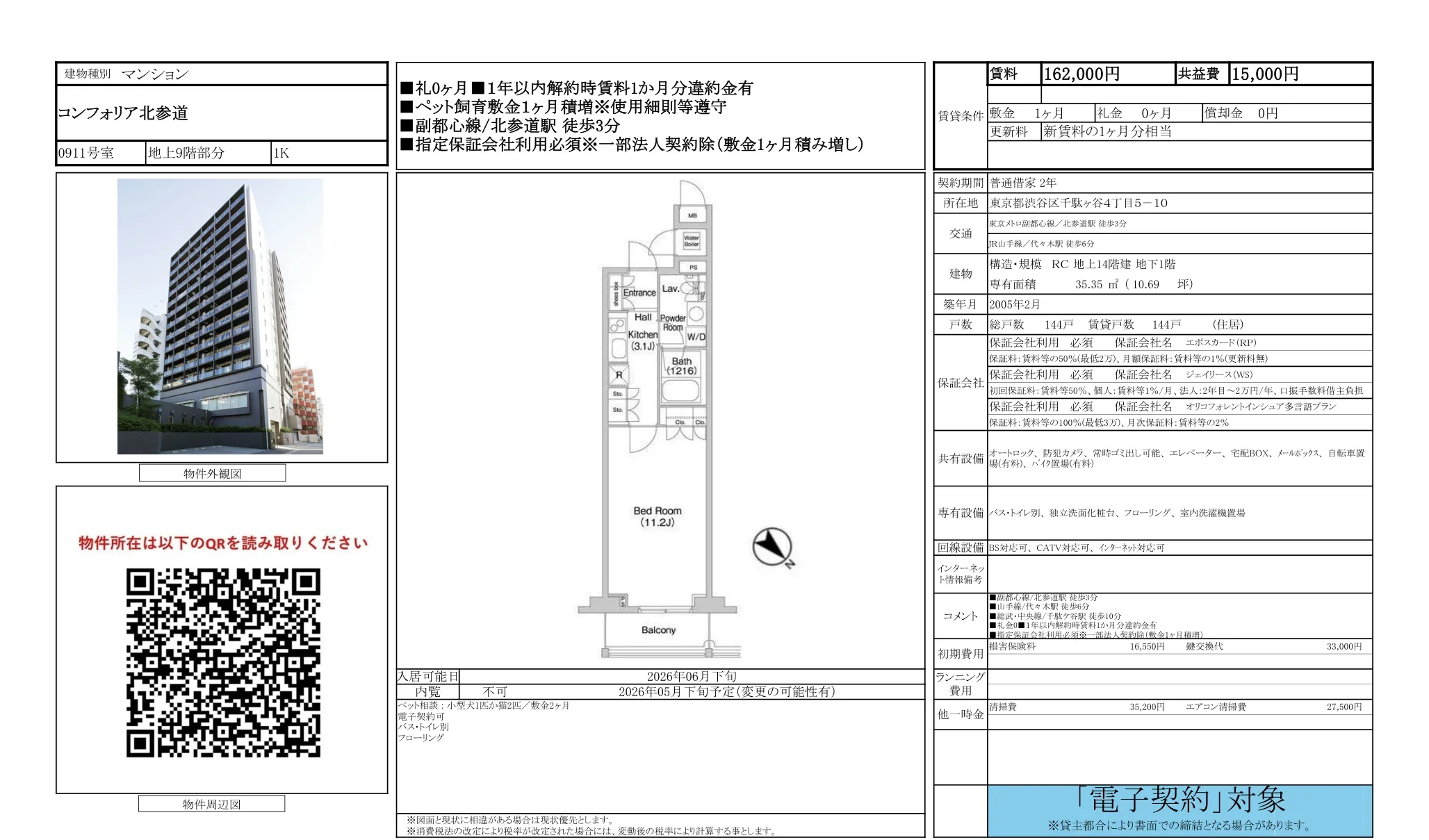 | 物件名 | コンフォリア北参道 0911号 |