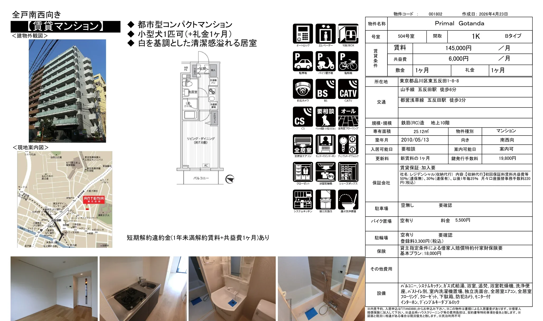 | 物件名 | プライマル五反田 504号 |
