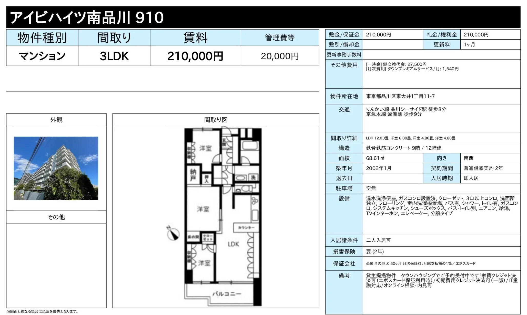 | 物件名 | アイビハイツ南品川 910 910 |