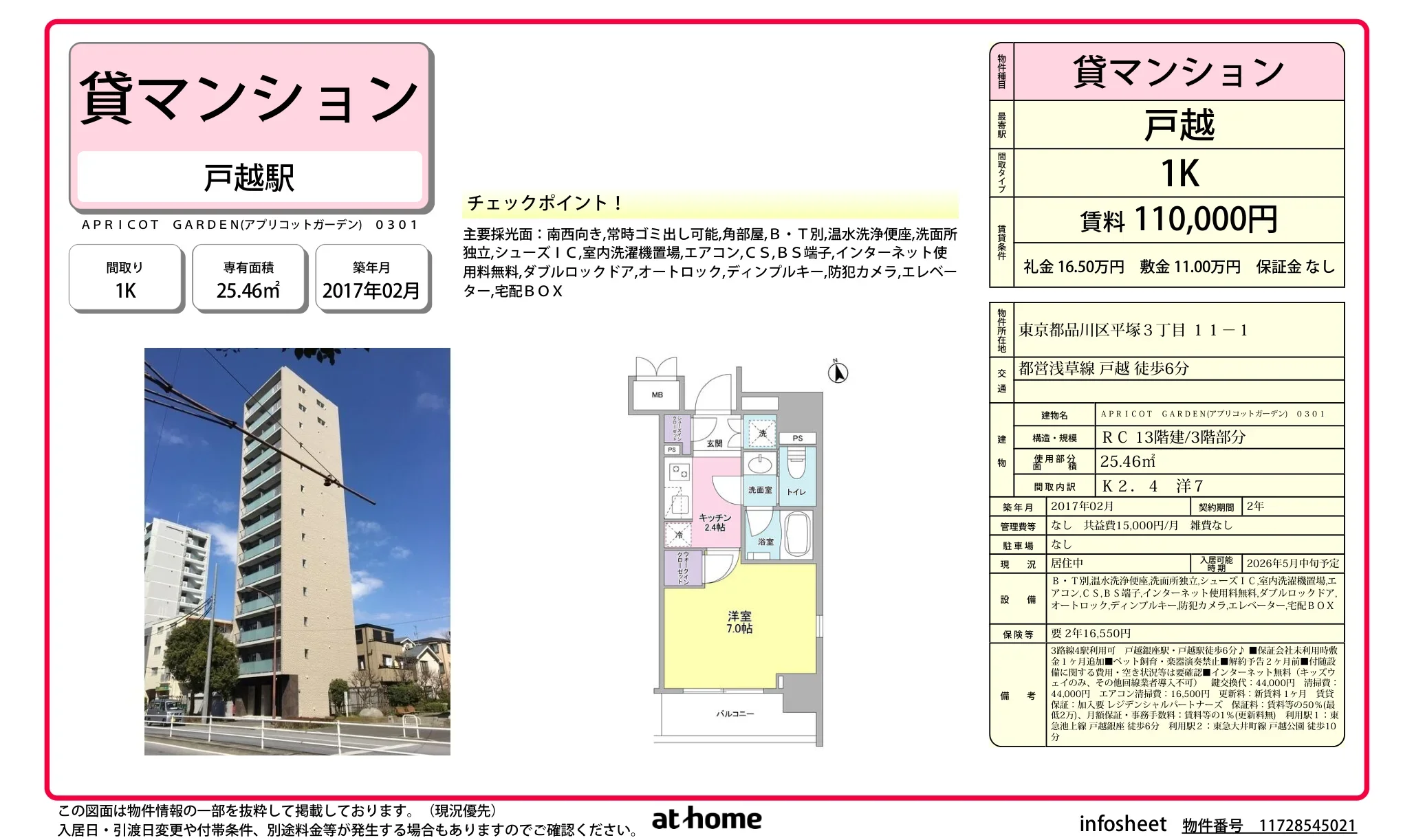 | 賃料 | 11万円 |