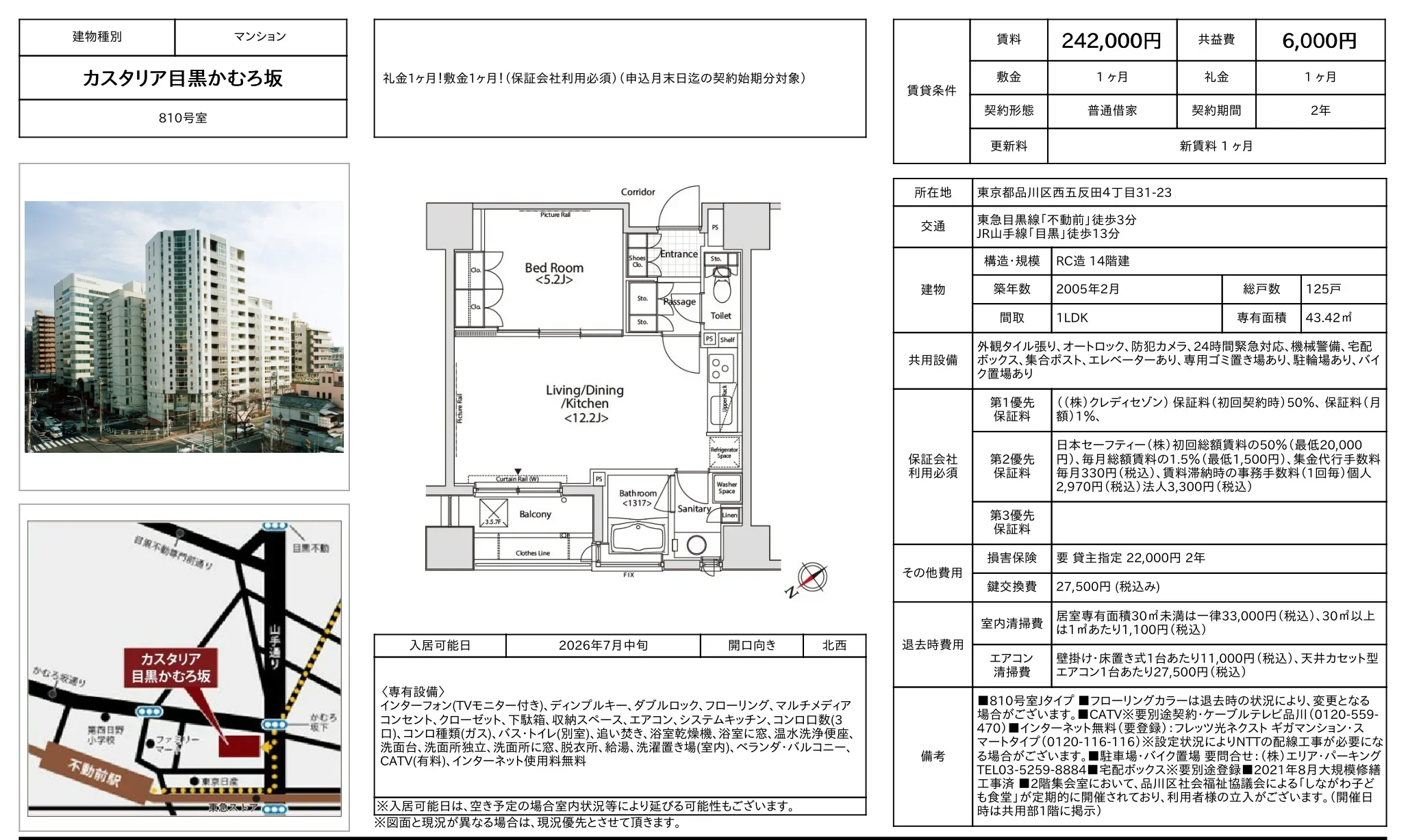 | 物件名 | カスタリア目黒かむろ坂 810号 |