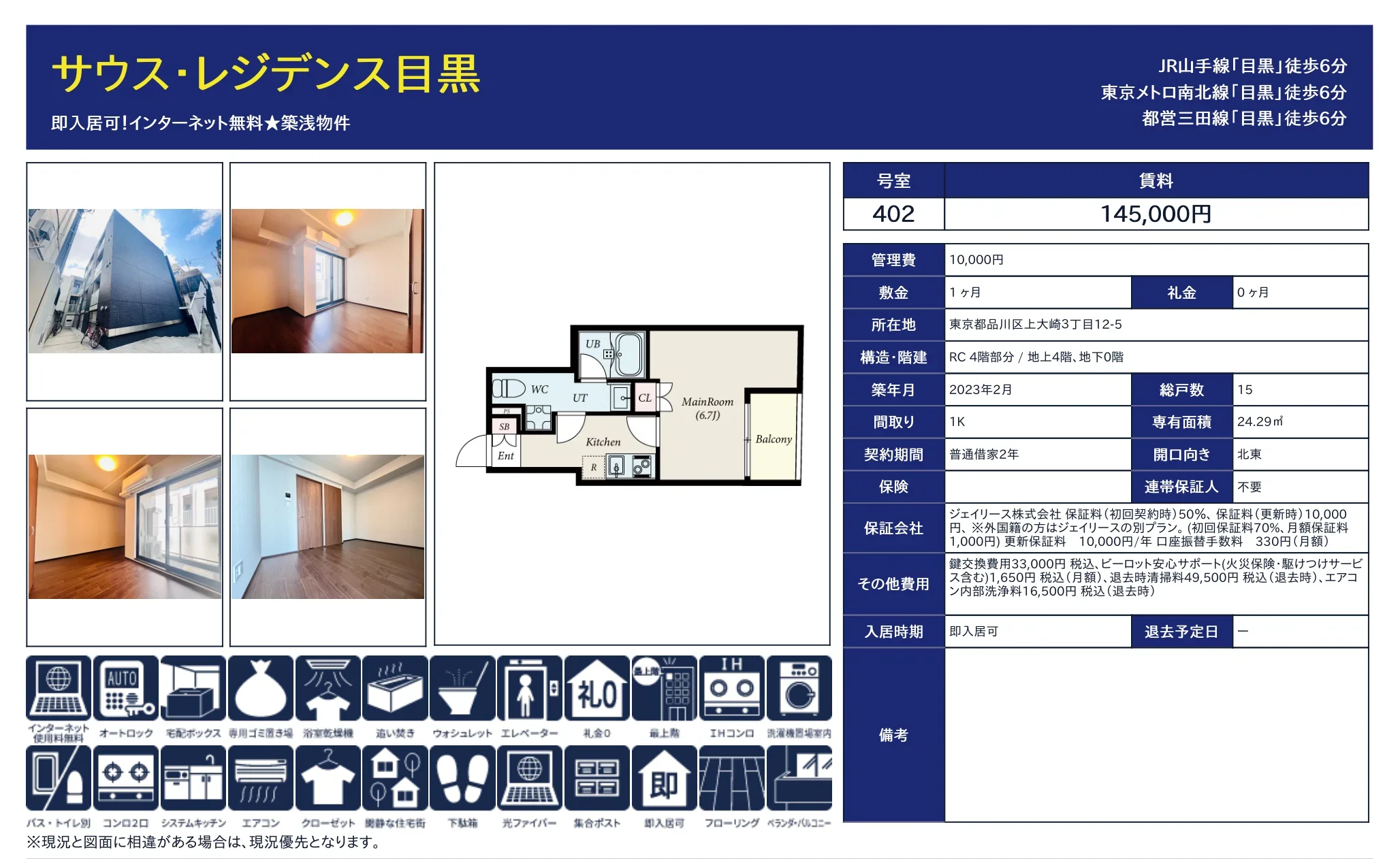 | 物件名 | サウス・レジデンス目黒 402号 |