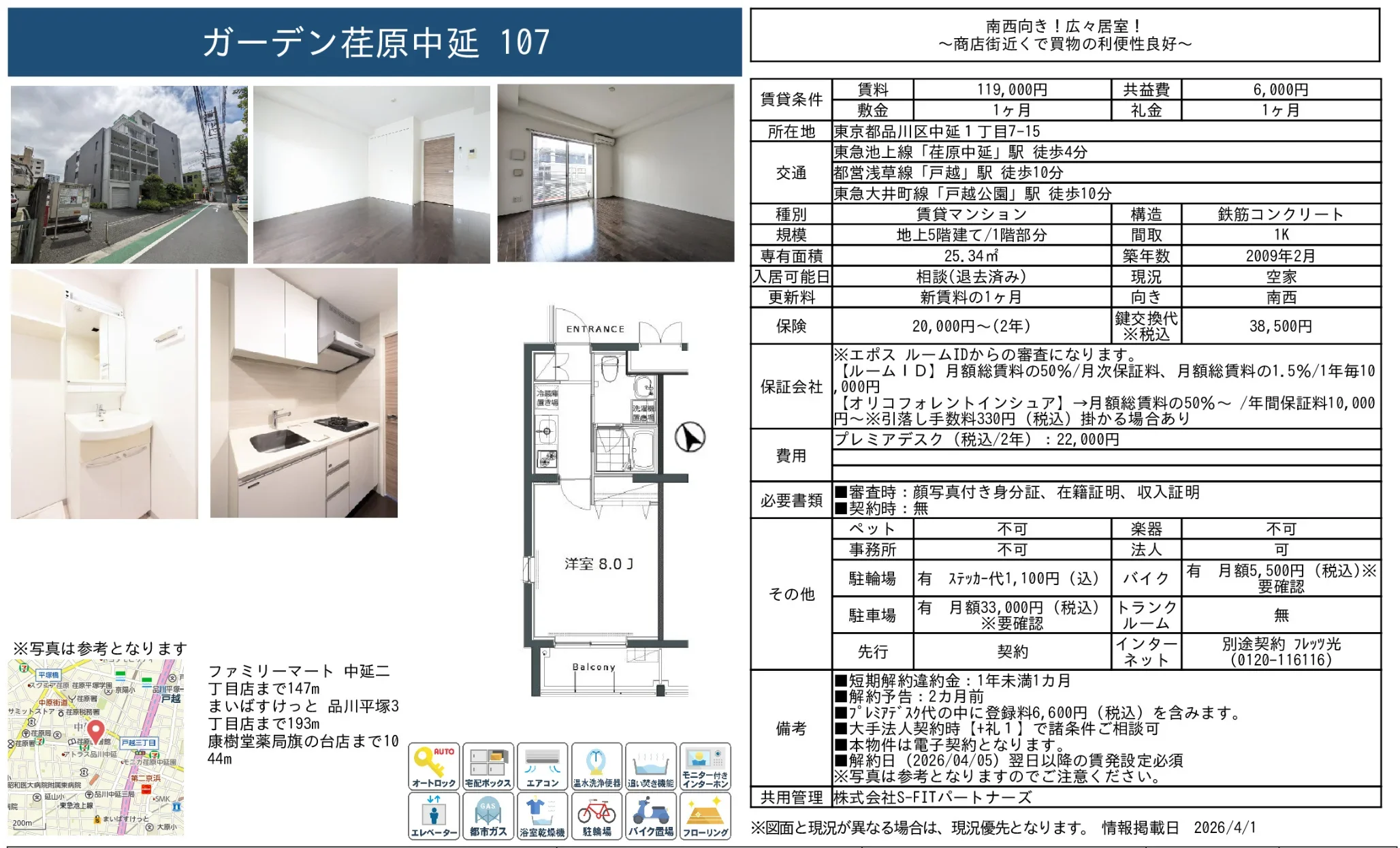 | 物件名 | ガーデン荏原中延 107号 |