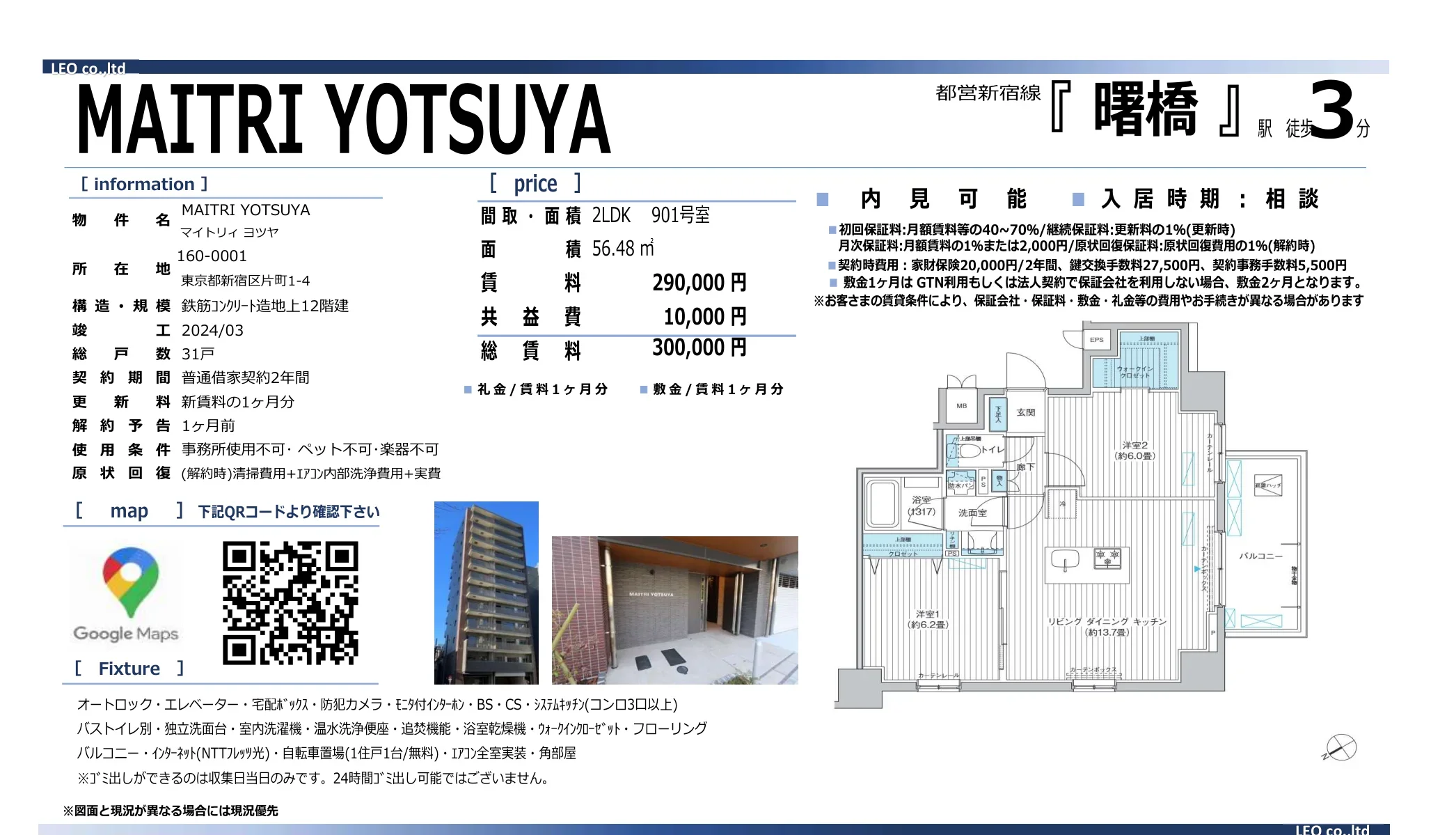 | 物件名 | MAITRI YOTSUYA 901号 |