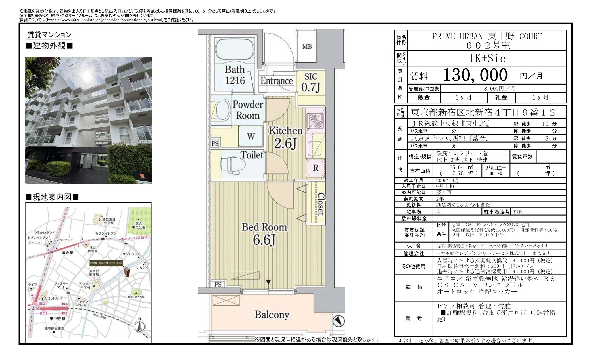 | 物件名 | PRIME URBAN 東中野 COURT 602号 |