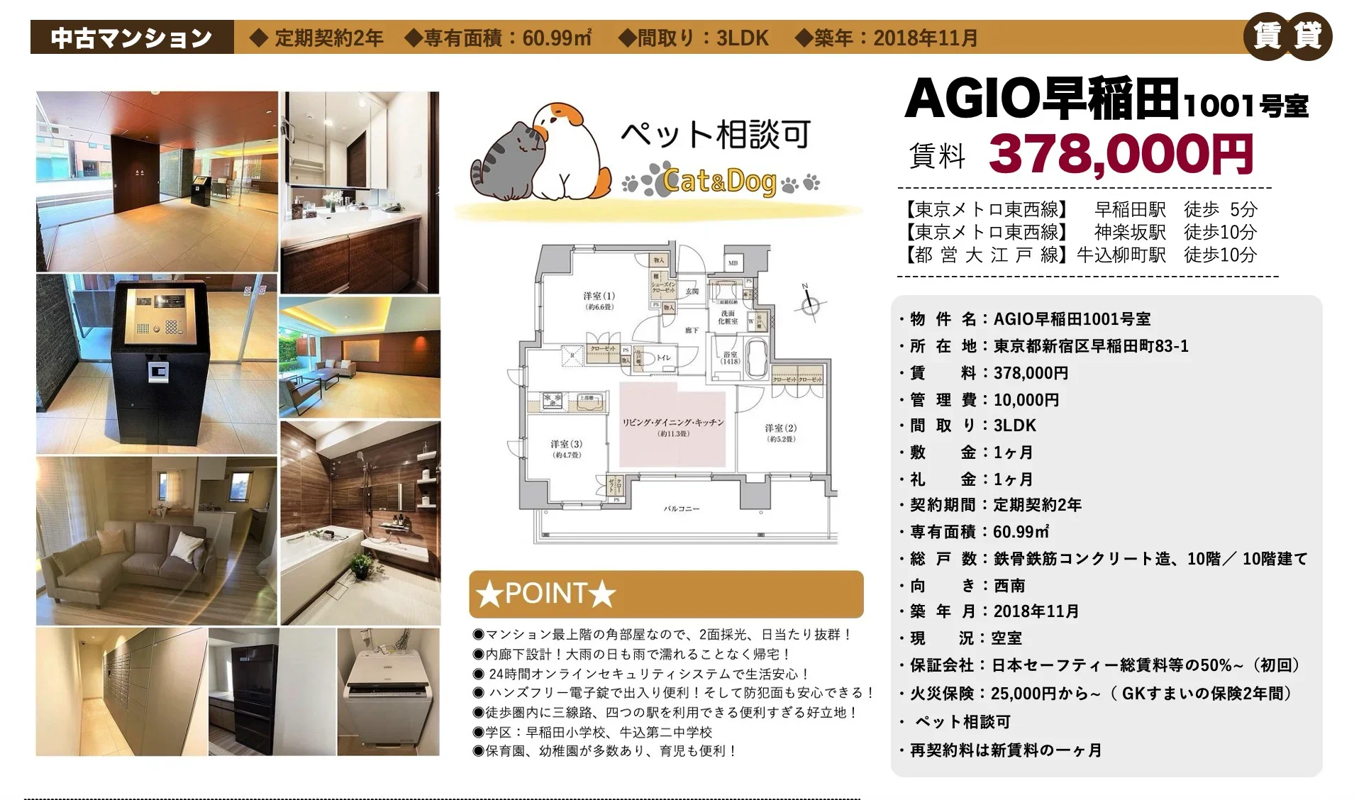 | 物件名 | AGIO 早稲田1001号室 1001号 |
