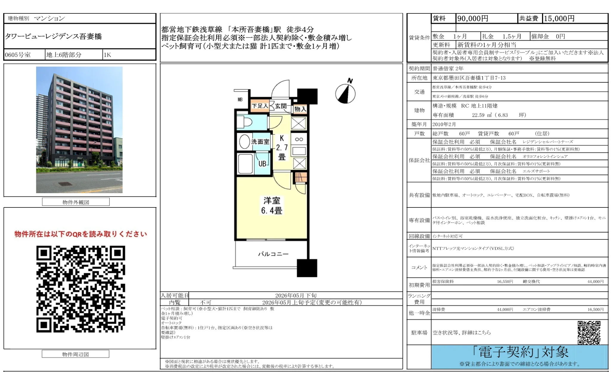 | 部屋番号 | 0605 |
