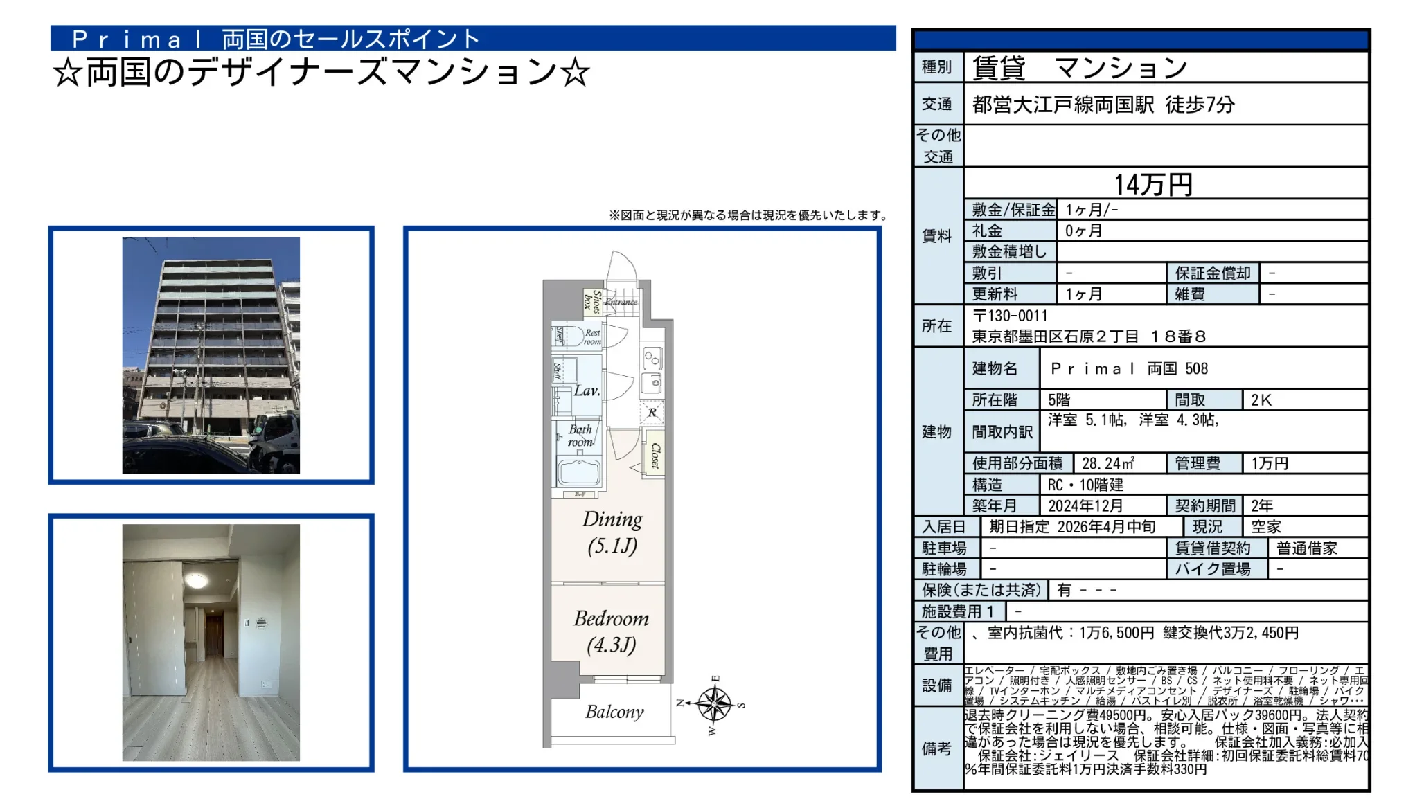 | 引渡時期 | 期日指定 2026年4月中旬 |