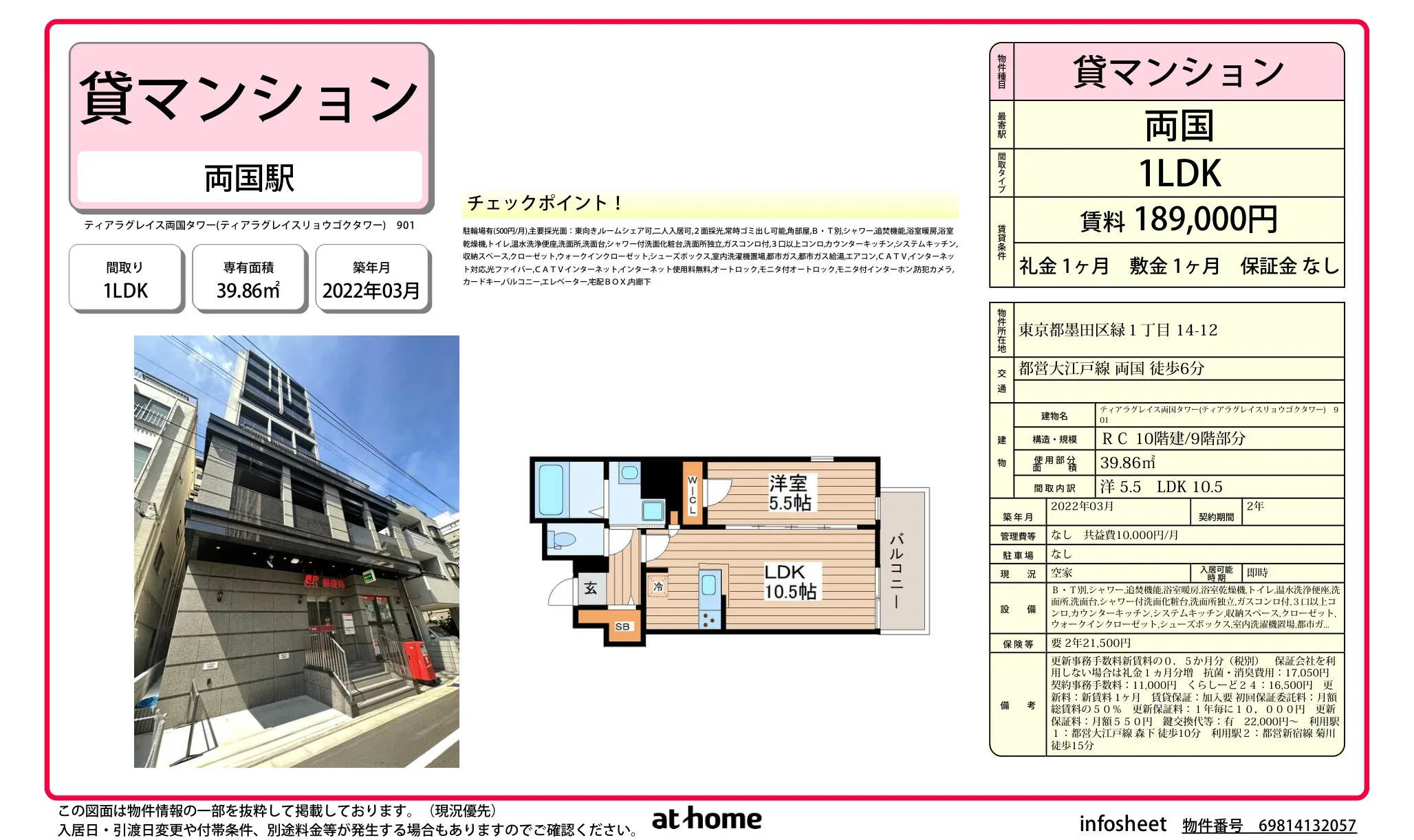 | 物件名 | ティアラグレイス両国タワー 901号 |