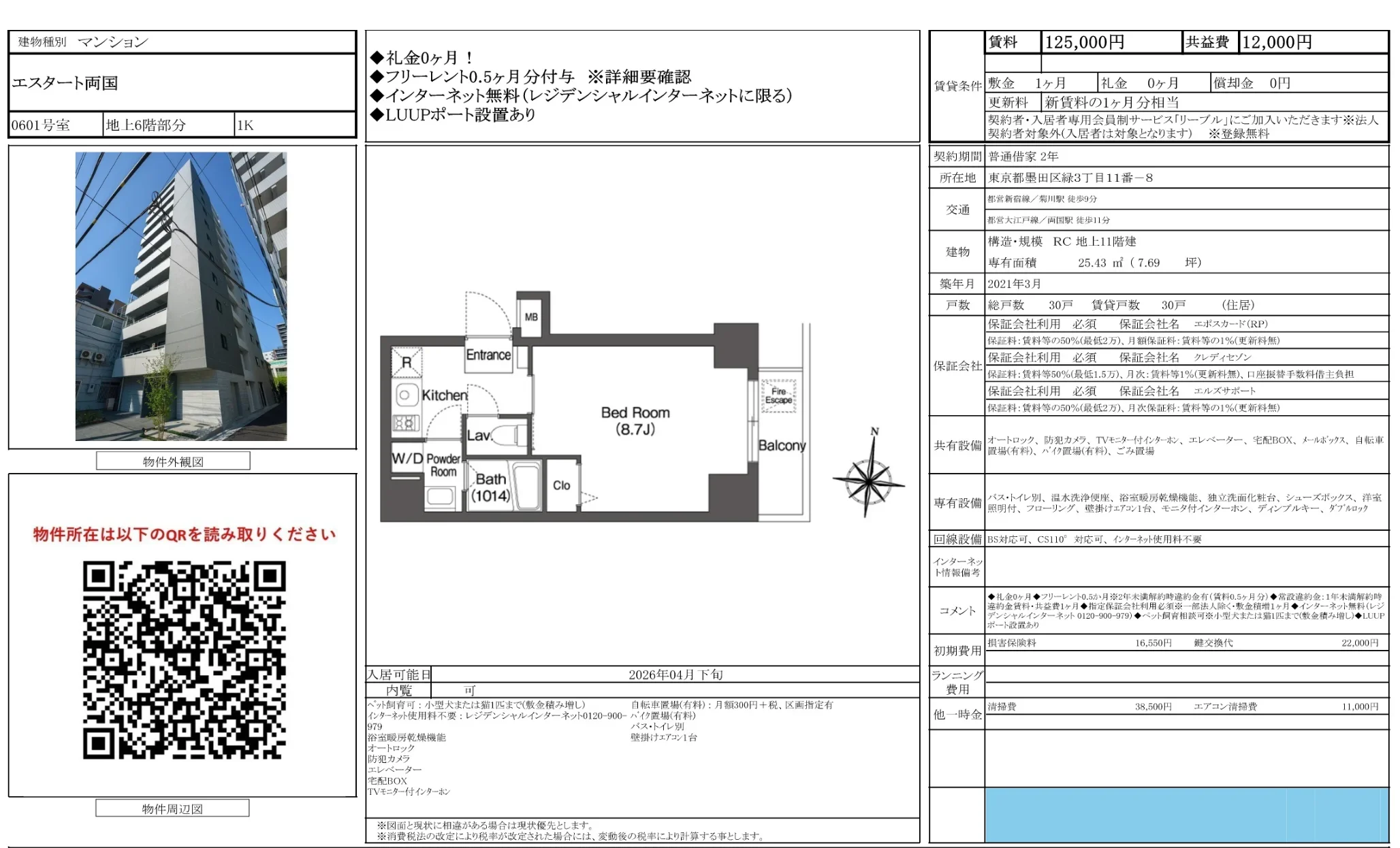 | 賃料 | 12.5万円 |