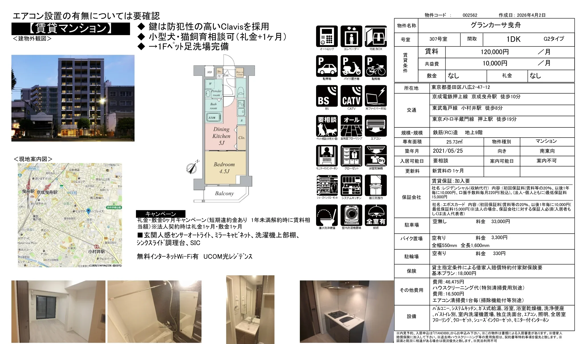 | アクセス | 京成曳舟駅 (徒歩10分) 小村井駅 (徒歩8分) 押上駅 (徒歩19分) |