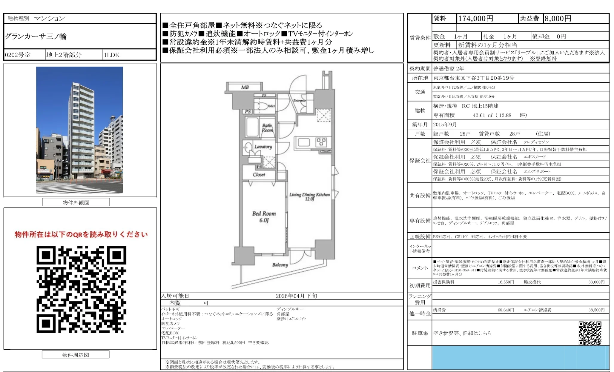 | アクセス | 三ノ輪 (徒歩4分) 入谷 (徒歩10分) 鶯谷 (徒歩17分) |