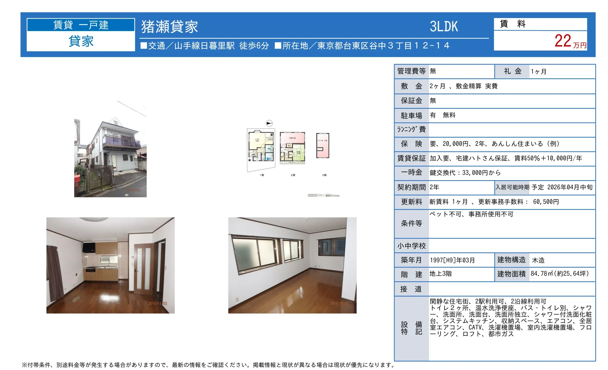 | 賃料 | 22万円 |