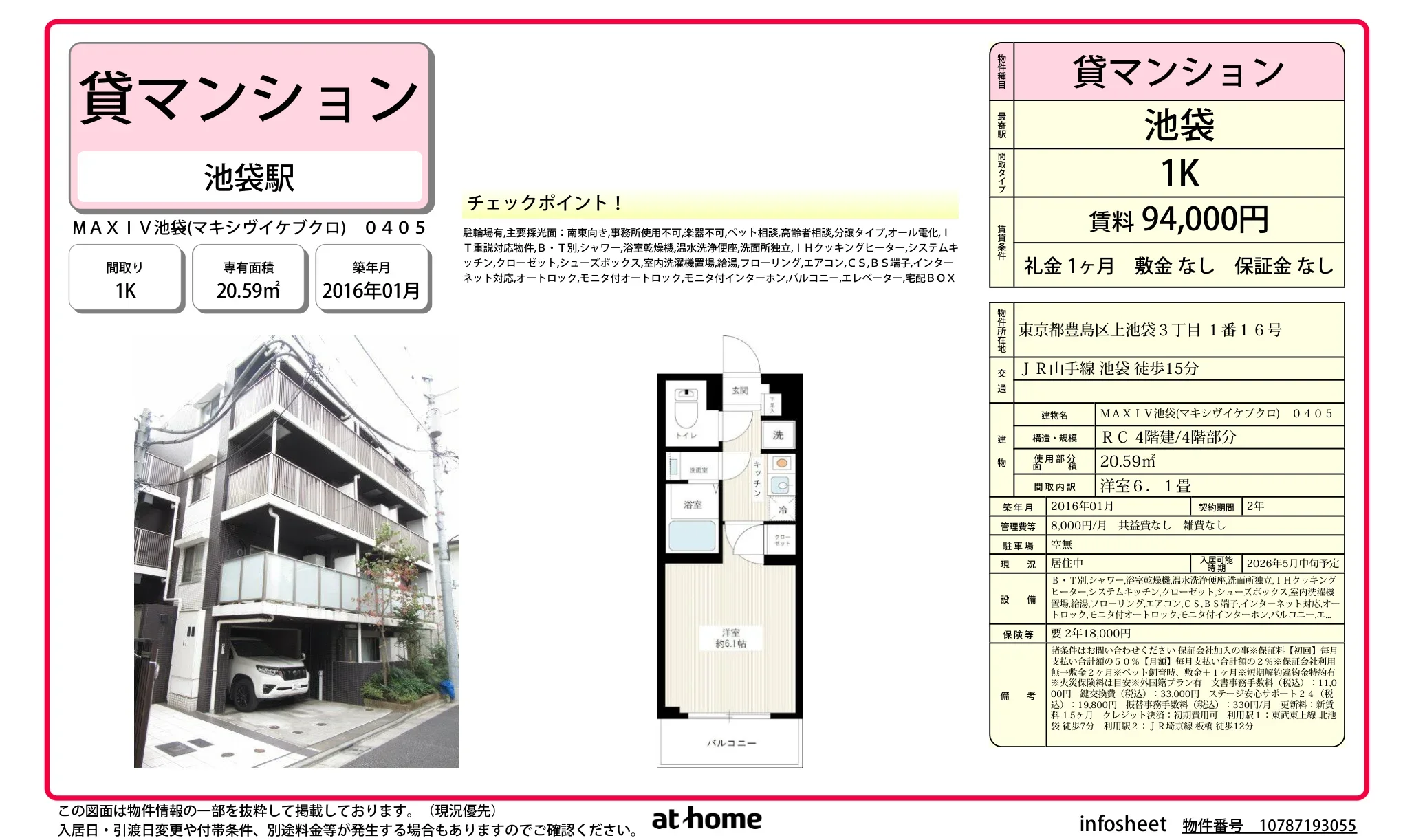 | 物件名 | MAXIV 池袋 (マキシヴイケブクロ) 0405 0405 |