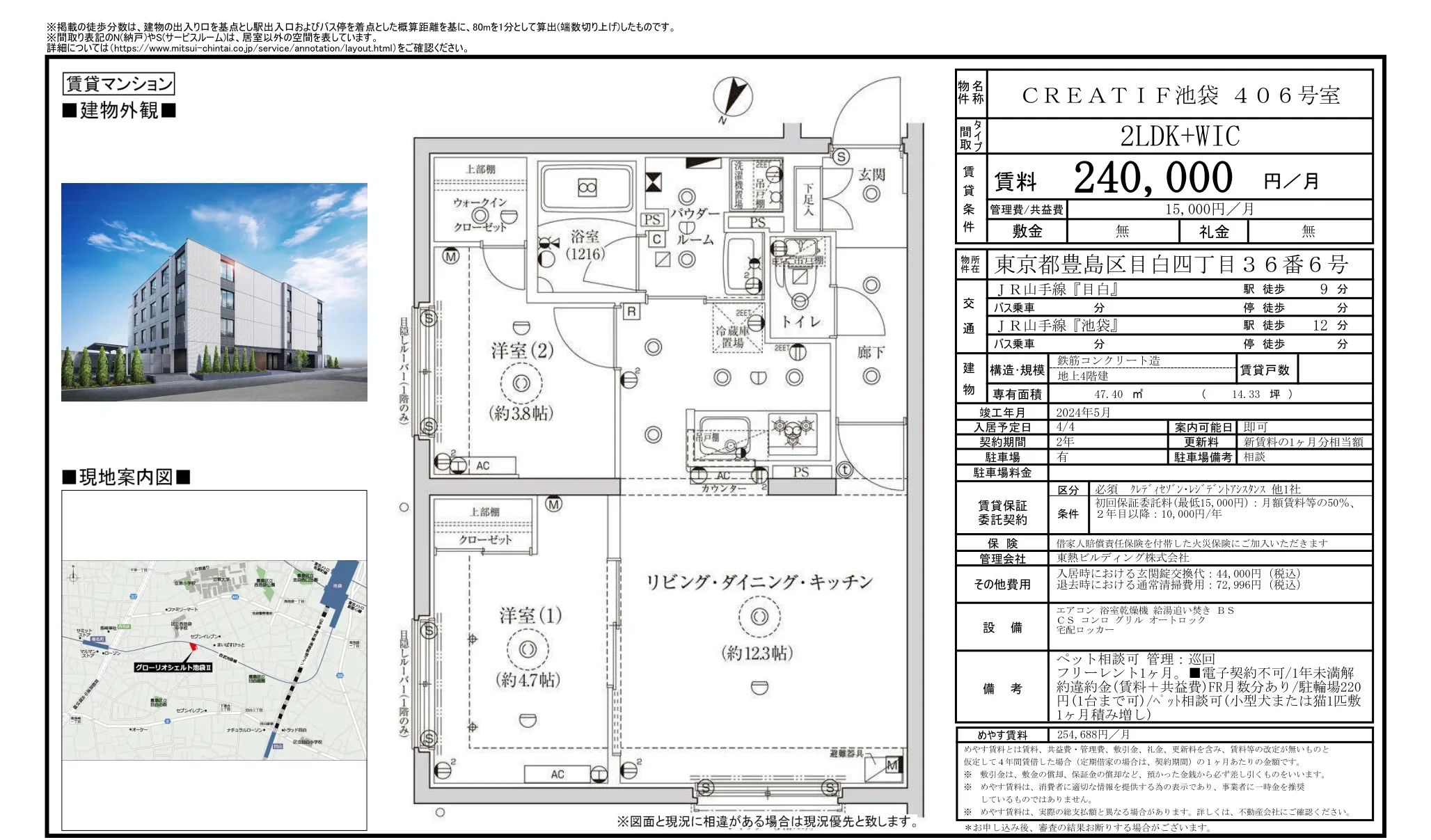 | 物件名 | CREATIF池袋 406号室 406号 |