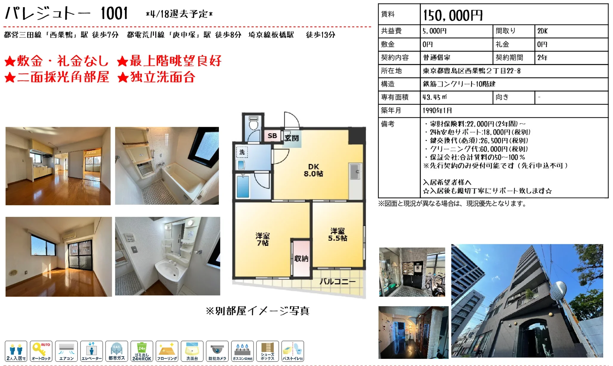 | アクセス | 西巣鴨駅 (徒歩7分) 庚申塚駅 (徒歩8分) 板橋駅 (徒歩13分) |