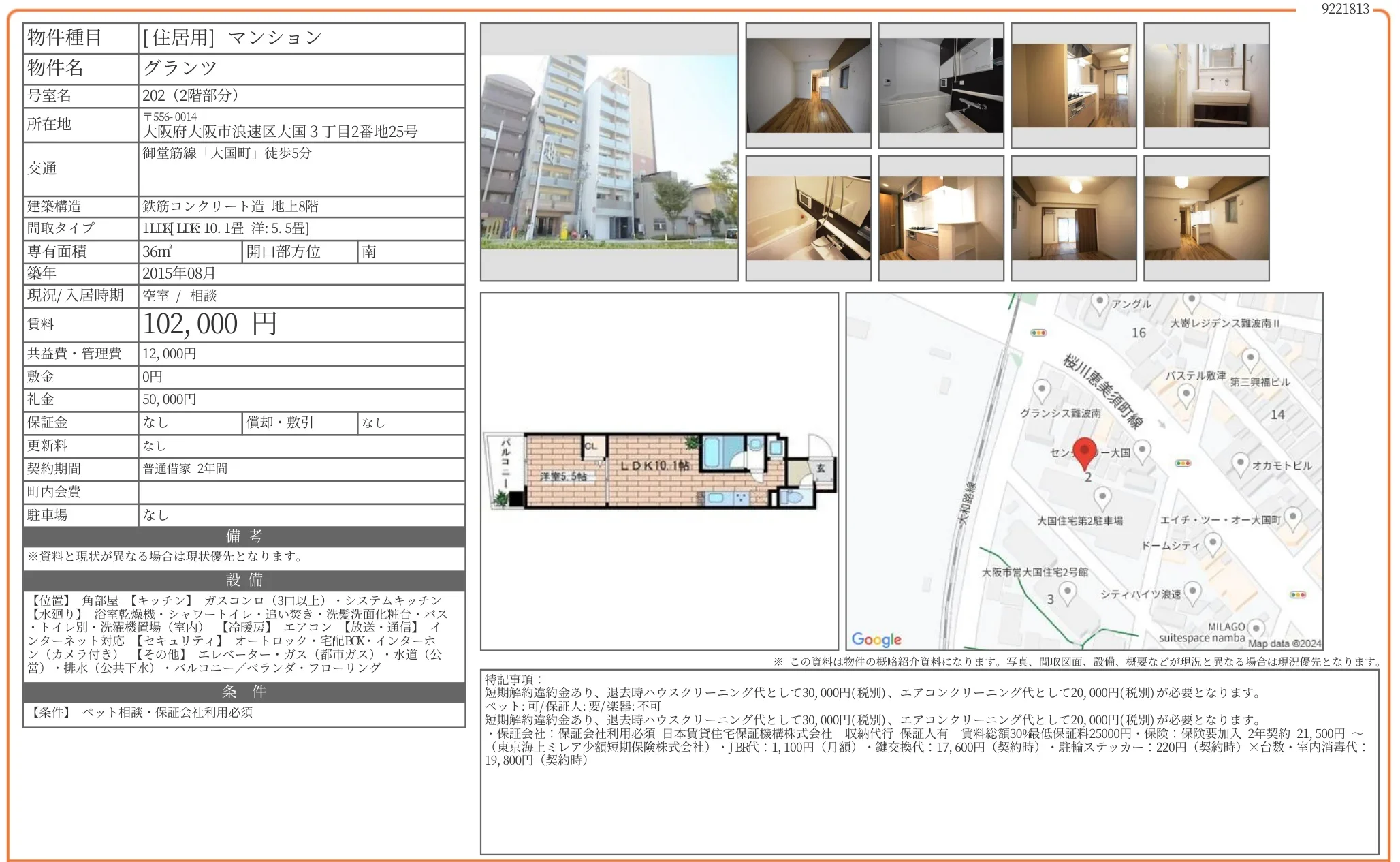 | 賃料 | 10.2万円 |